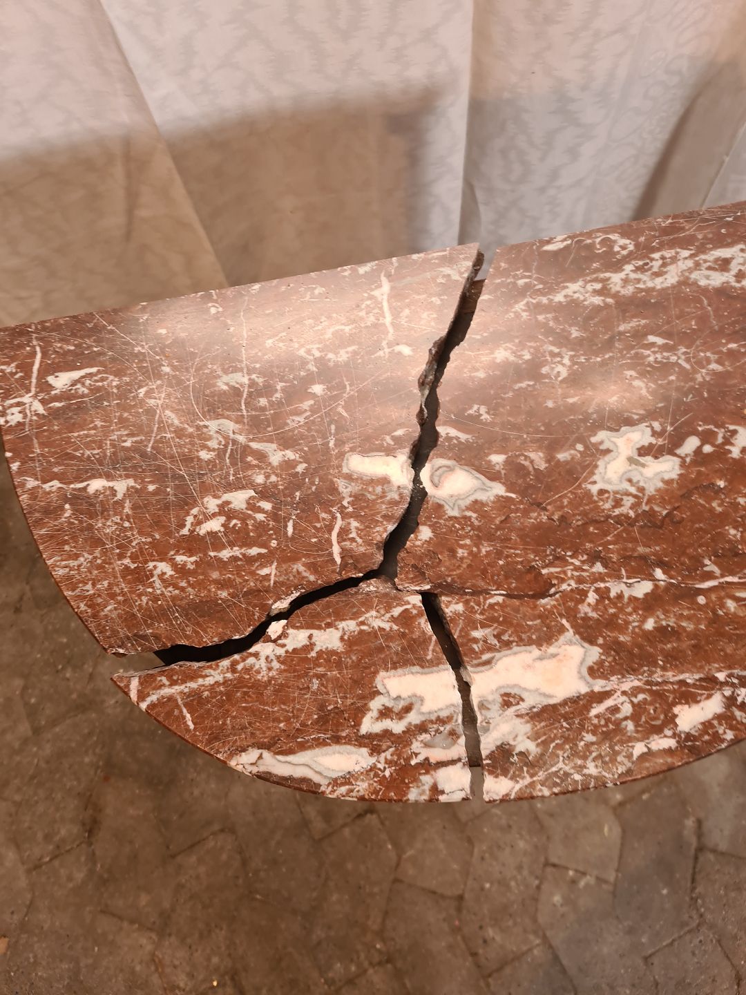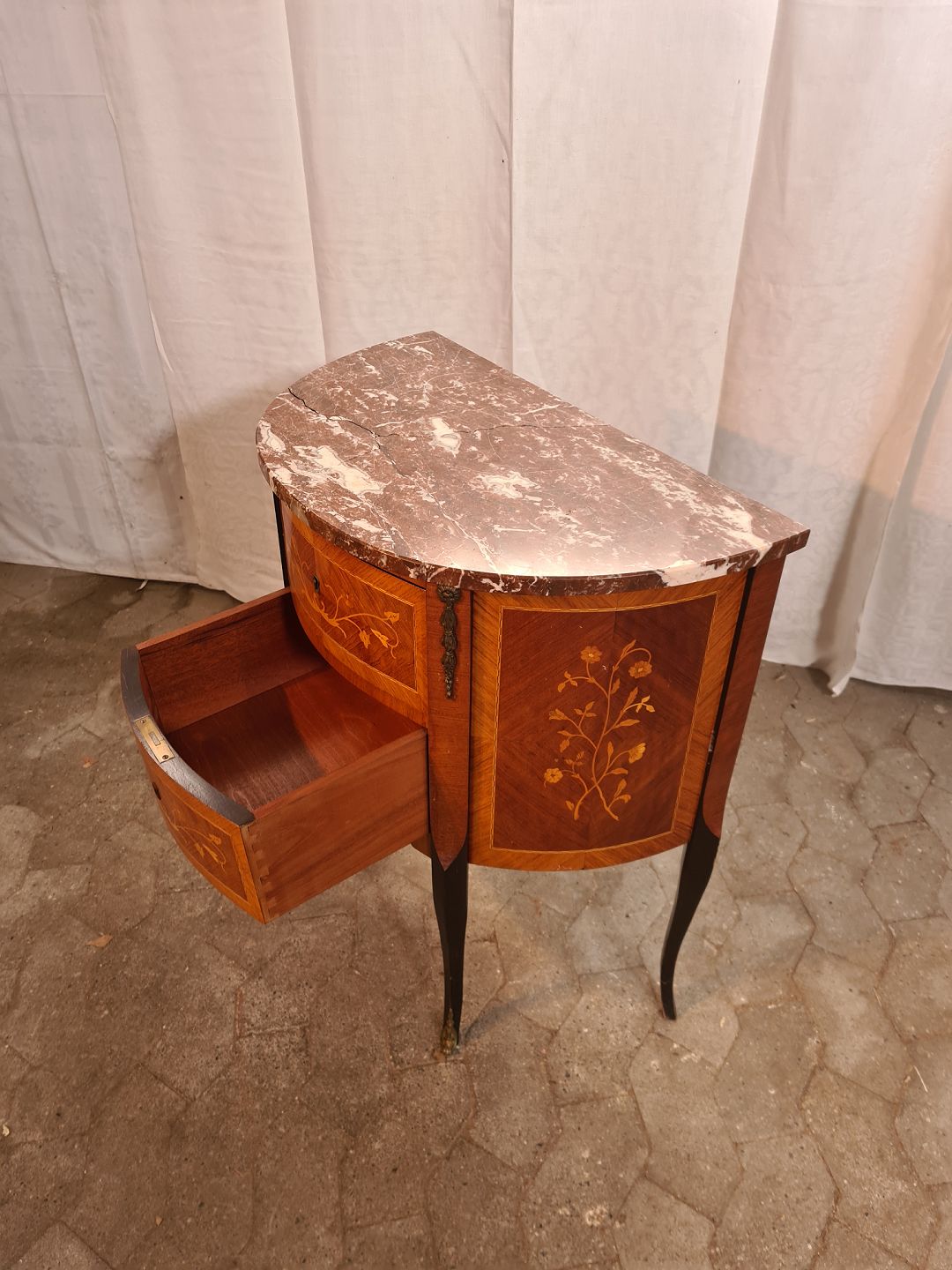 Kommode i fineret mahogni med intasia og marmorplade, fra 1980erne.