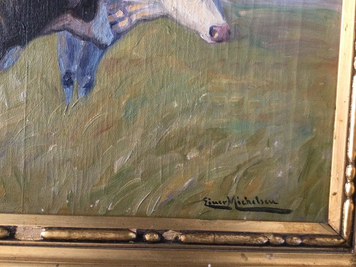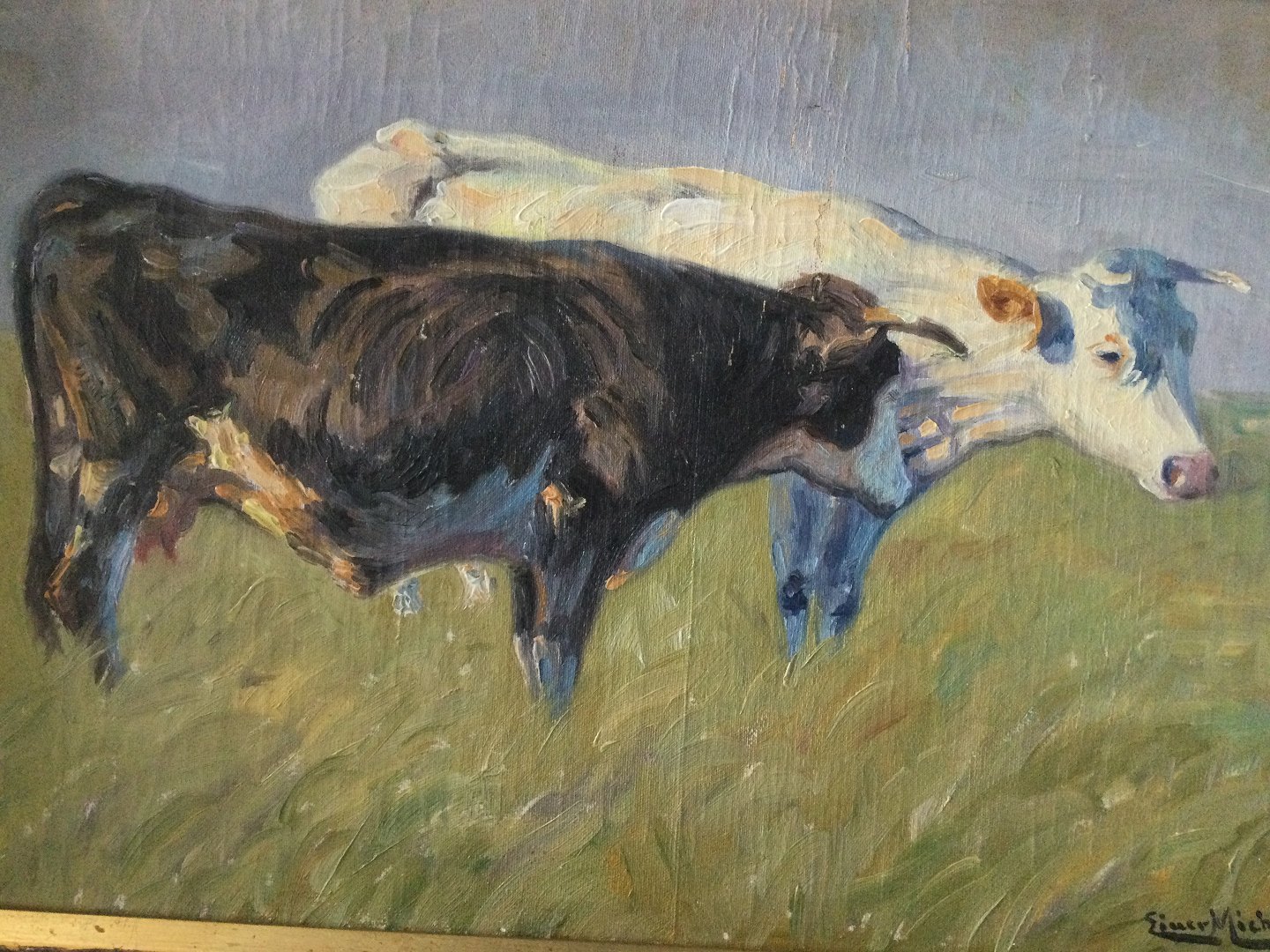 Maleri af Einer Michelsen - 2 køer på mark.