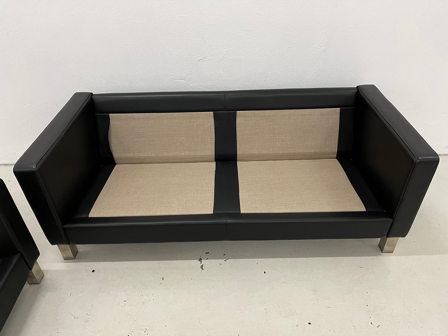 Mogens Hansen MH321 sofa group in black Mammut leather and on square brushed steel legs Inc. 4 leather posts. New price 64.783,DKK
