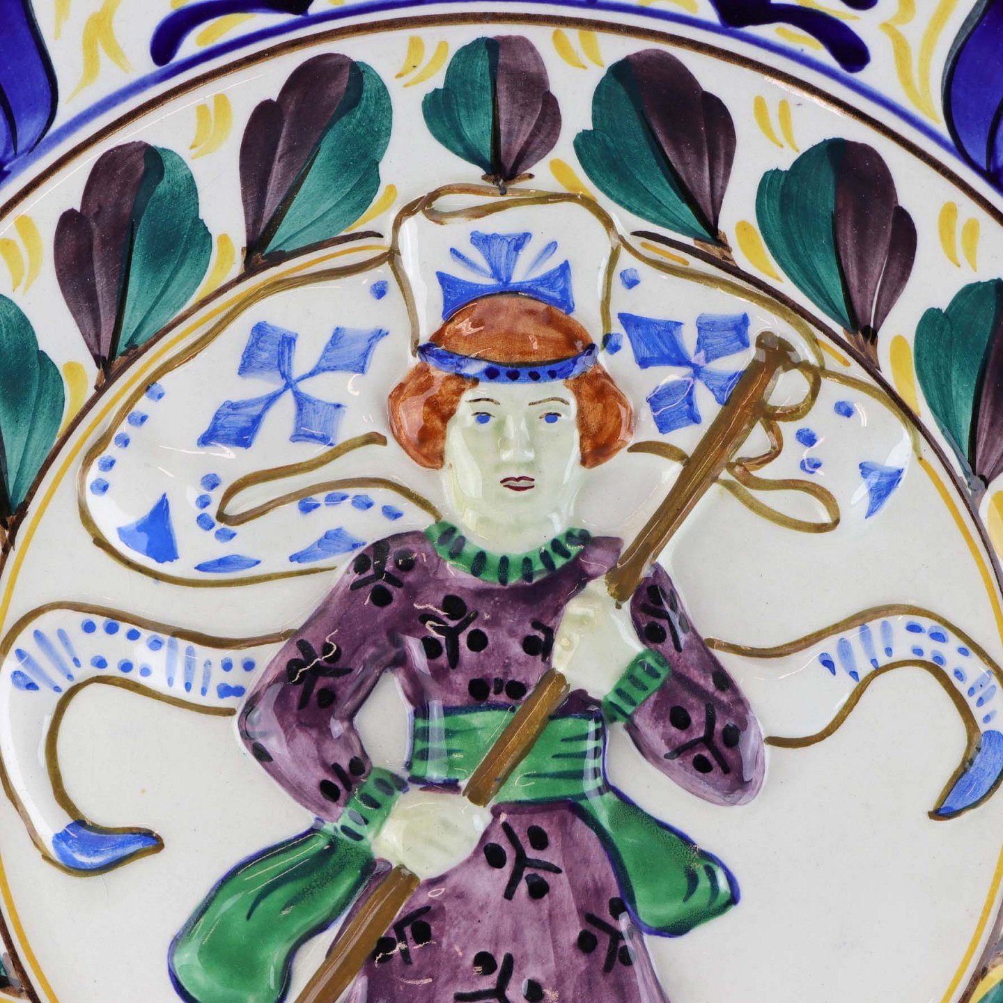 Stor juleplatte i fajance fra år 1919 med motiv af en engel med flag. Nr. 1163/1024
