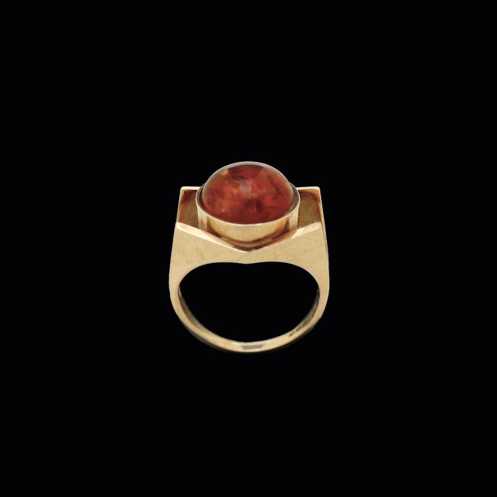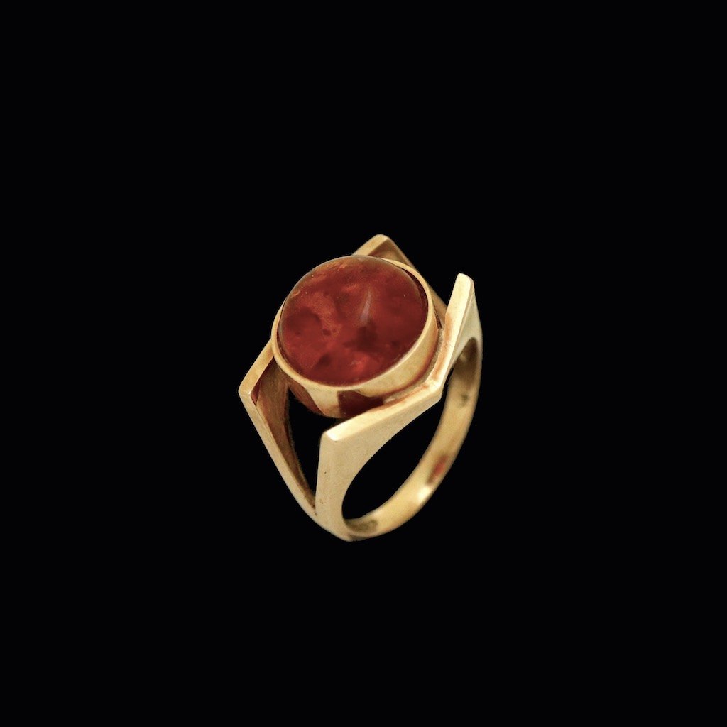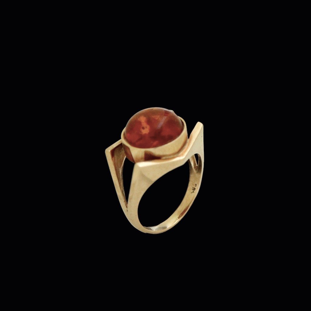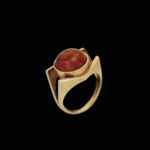 Einer Fehrn. Ring i 14k guld med rav.