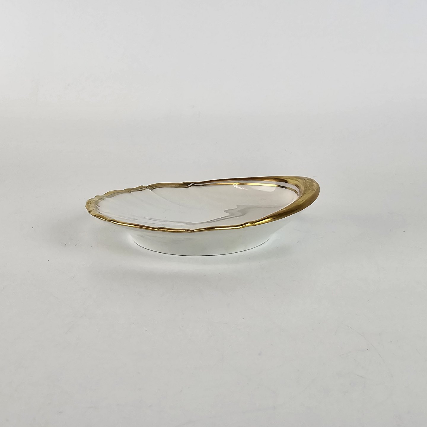 Musling formet asiet fra stellet Offenbach med guldkant. Nr. 200