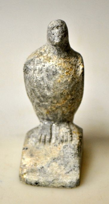 Grønlandsk fedtstensfigur af siddende vandrerfalk, 20. årh.