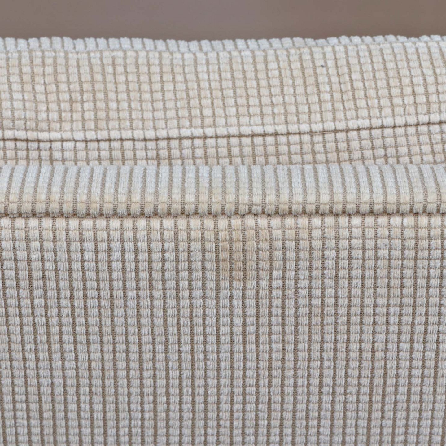 Tre personers sofa betrukket med lyst fløjlsstof i flot stand og ben af lakeret mørkt træ