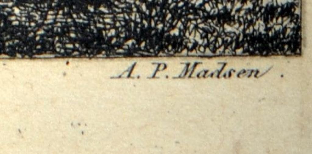 Madsen, Andreas Peter (1822 - 1911) Danmark: Affaldsdynge ved Fannerup, Randers Amt. Radering. Signeret. 19 x 26,5 cm.