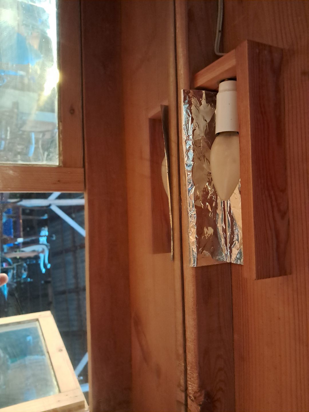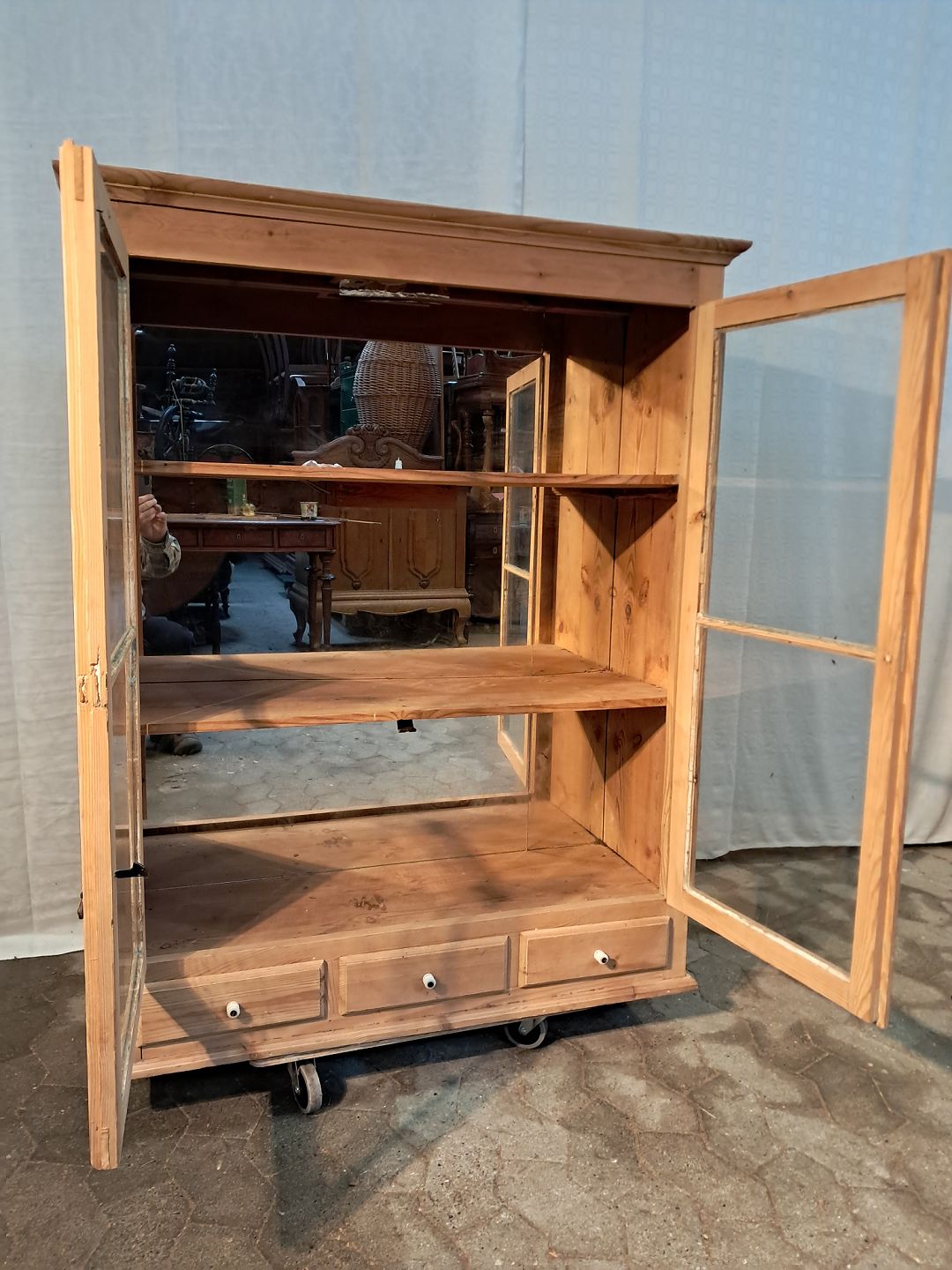 Vitrineskab i massivt fyrretræ, fra 1920erne.