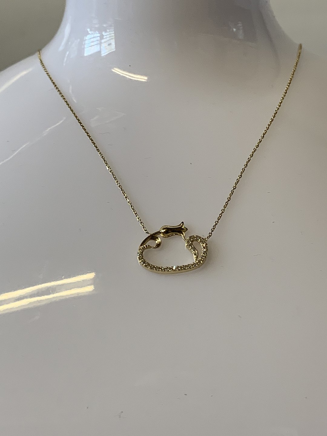 Gold necklace in 14 carat gold, with beautiful pendant and white stones. Stamped KOSUN 585