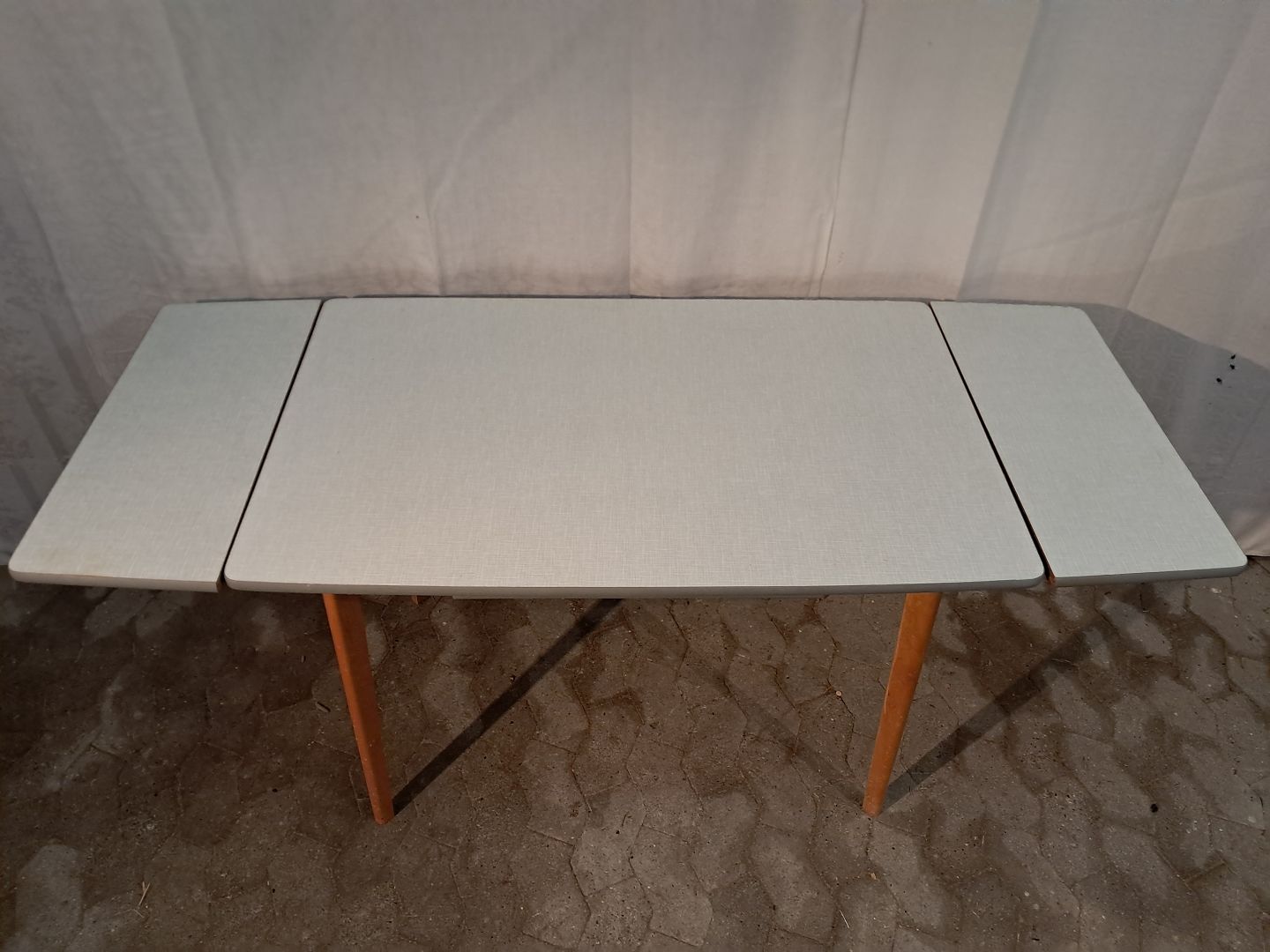 Bord i massivt bøgetræ med formikaplade og hollandsk udtræk, fra 1960erne.