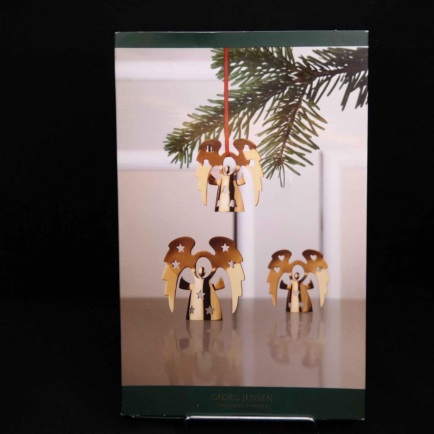 Julepynt i stål forgyldt med 24-karat guld fra Georg Jensen. 3 stk juleengle i æske.