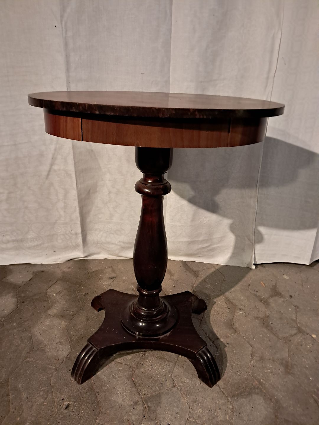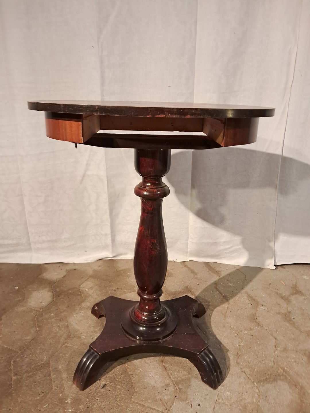 Lampebord i fineret og massivt mahogni og bøgetræ, fra 1900erne.