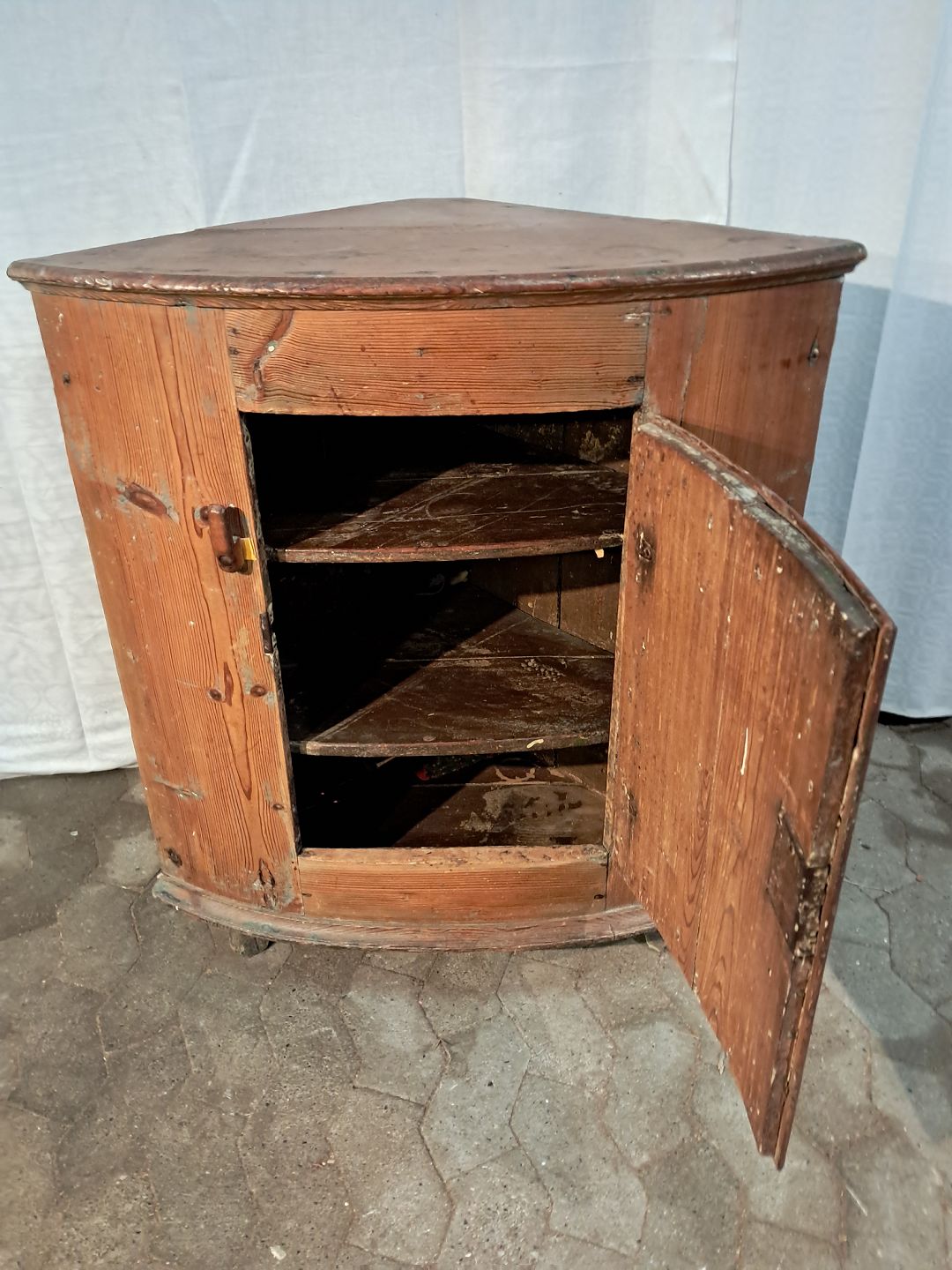 Hjørneskab i massivt fyrretræ, fra 1900erne.