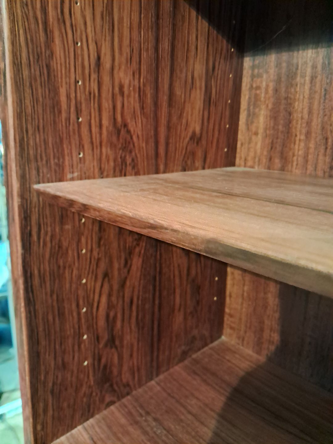 Reol i fineret palisander med justerbar hylder, fra 1960erne.