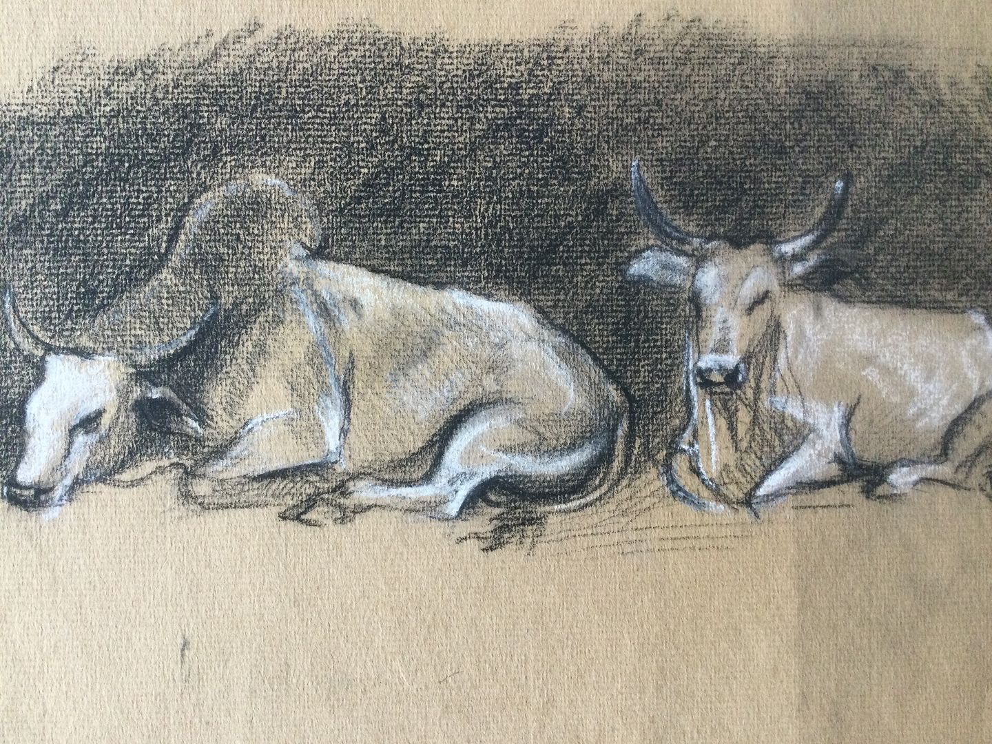 Tegning af Torkil Norél - Liggende okser.