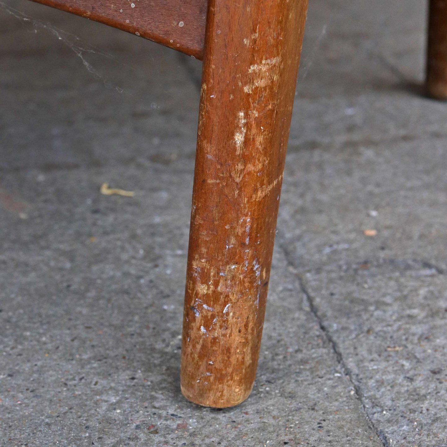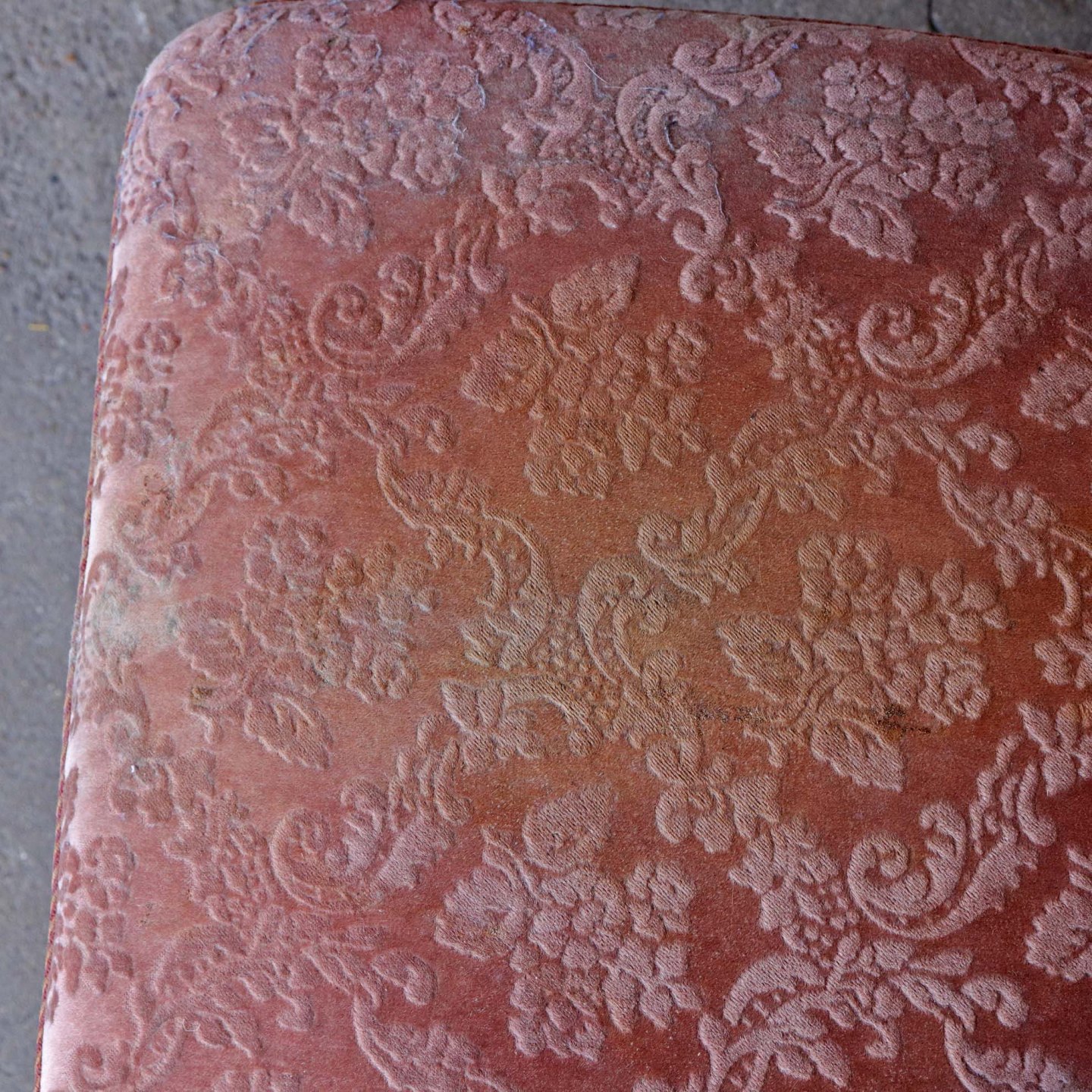 Fremstår med brugsspor på stel og stof. Trænger til ompolstring.