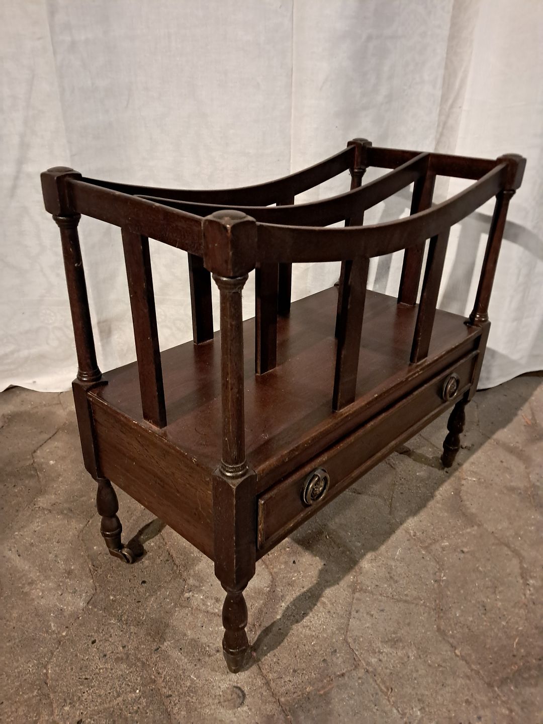 Avisholder i massivt og fineret mahogni, fra 1980erne.
