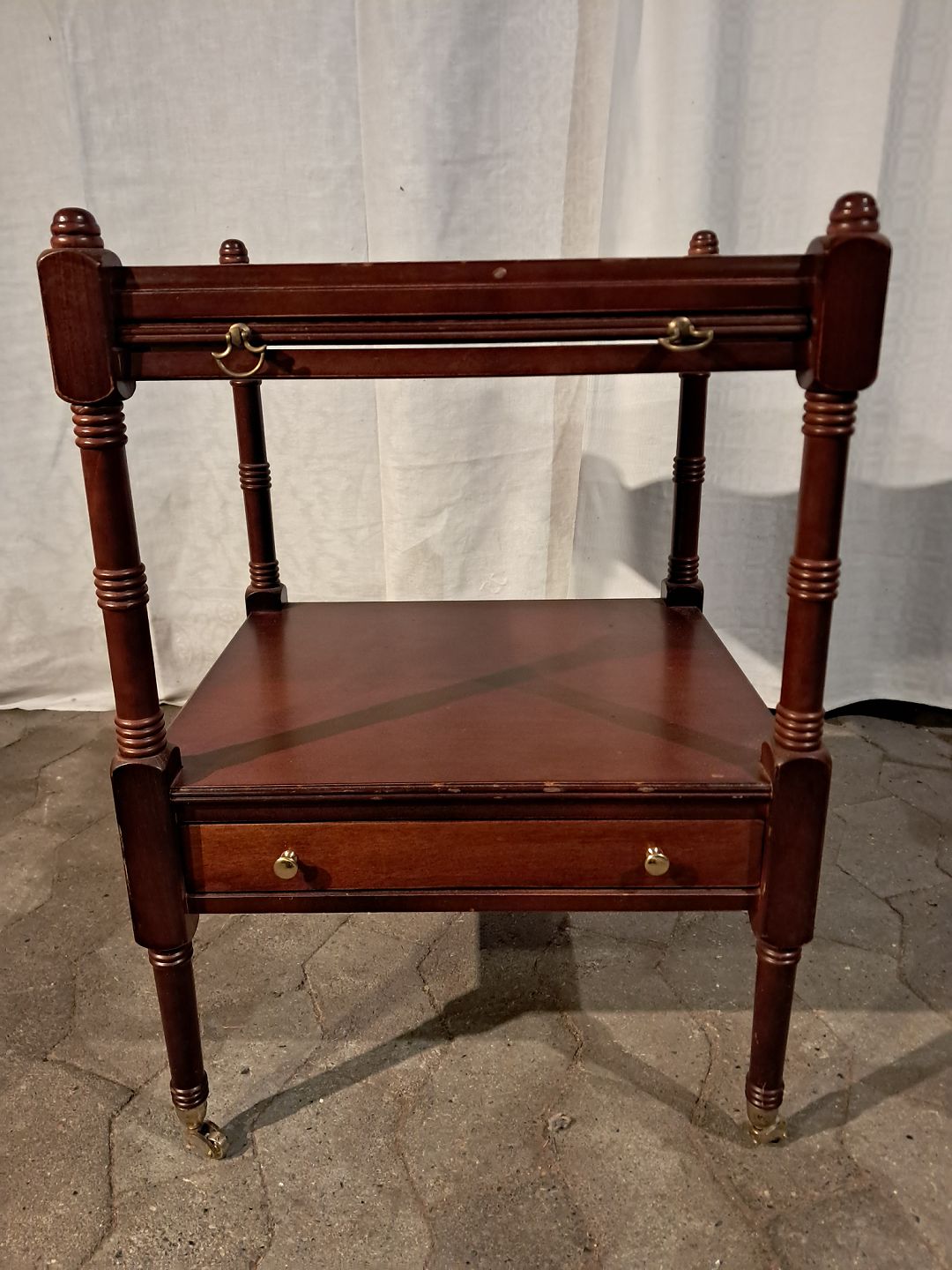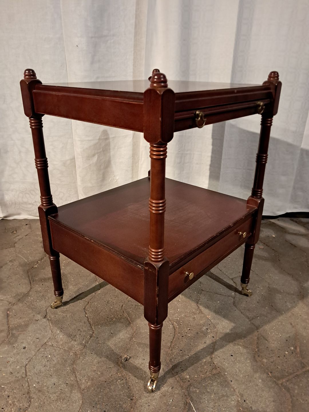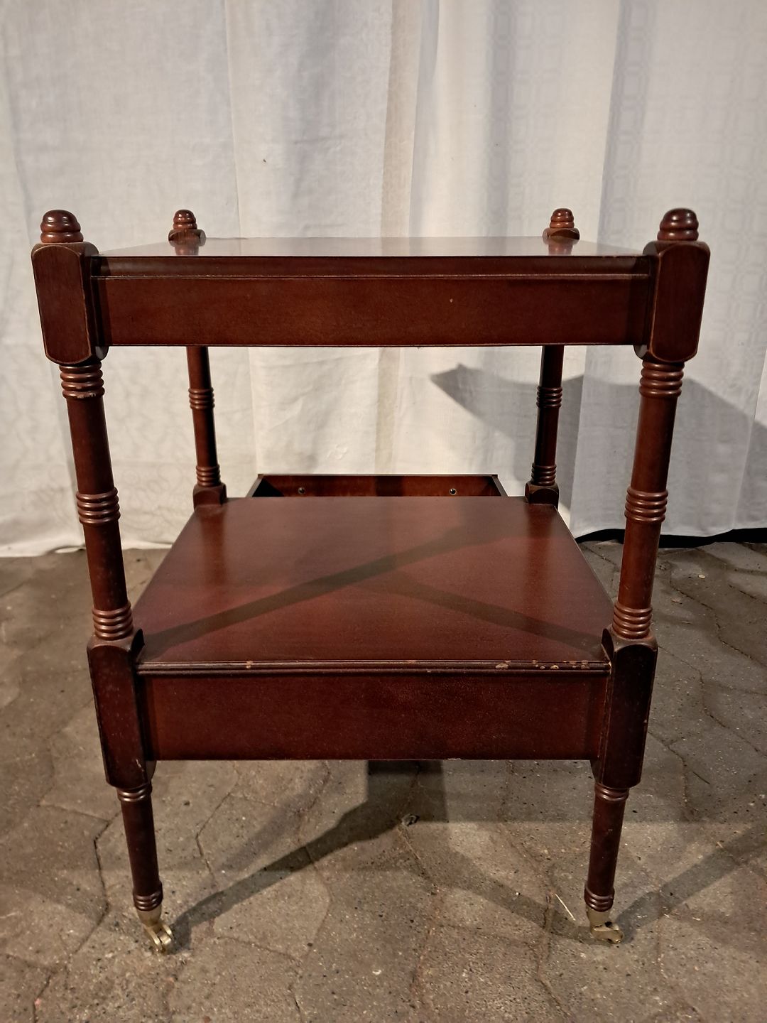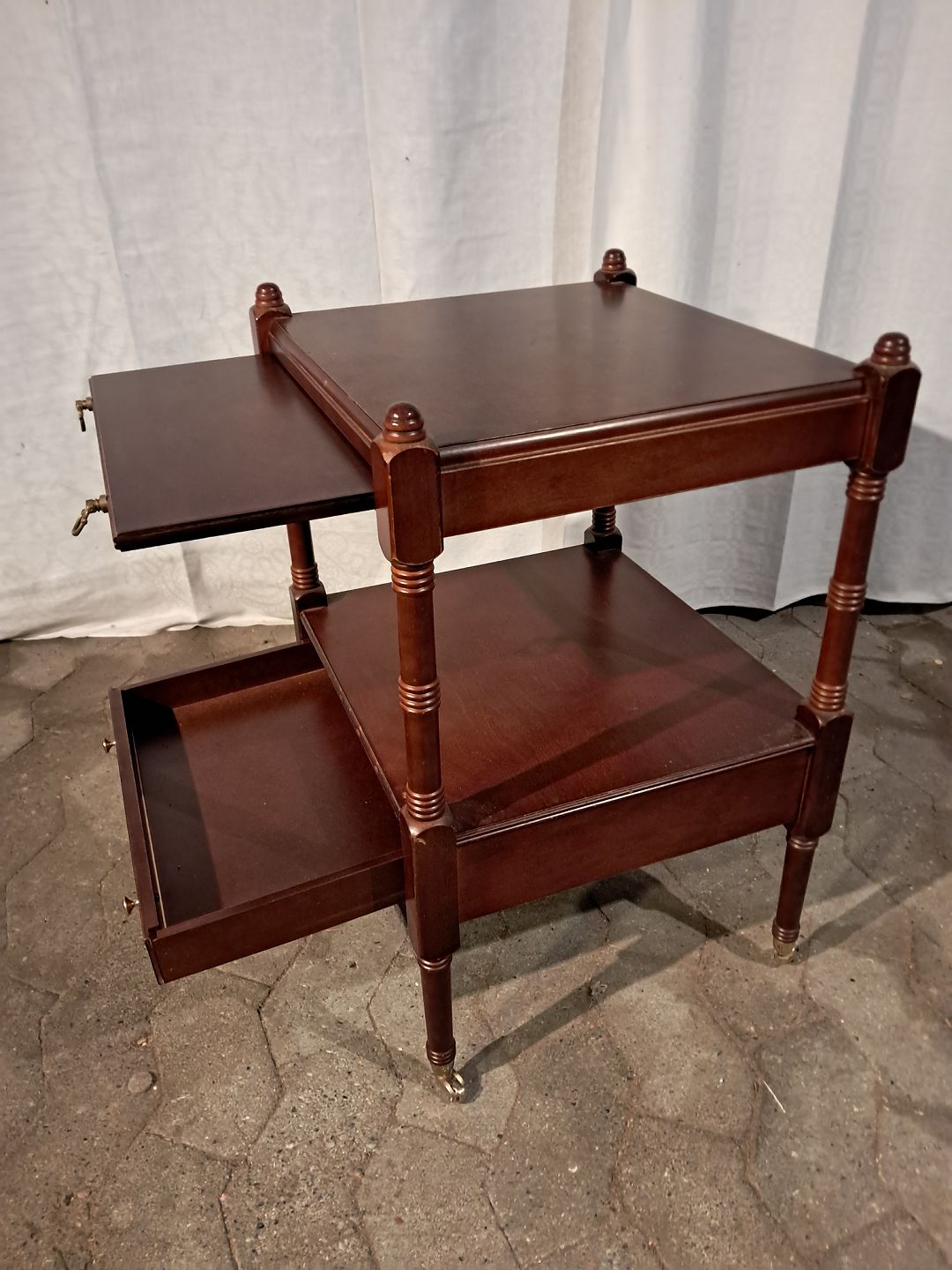 Pyntebord i fineret mahogni, fra 1980erne.