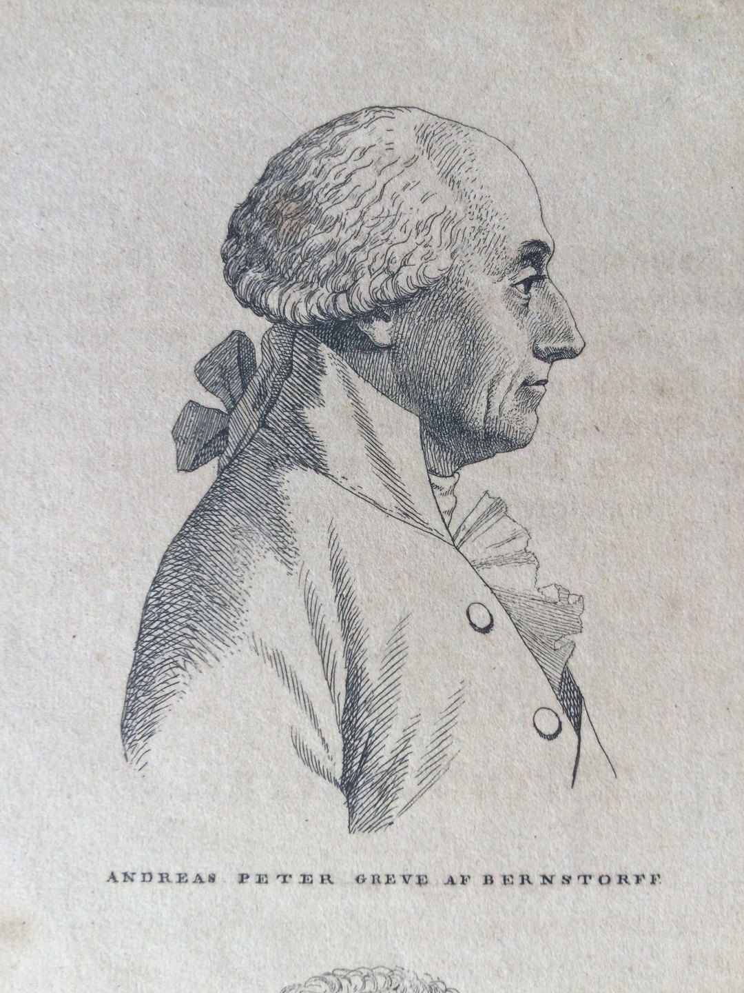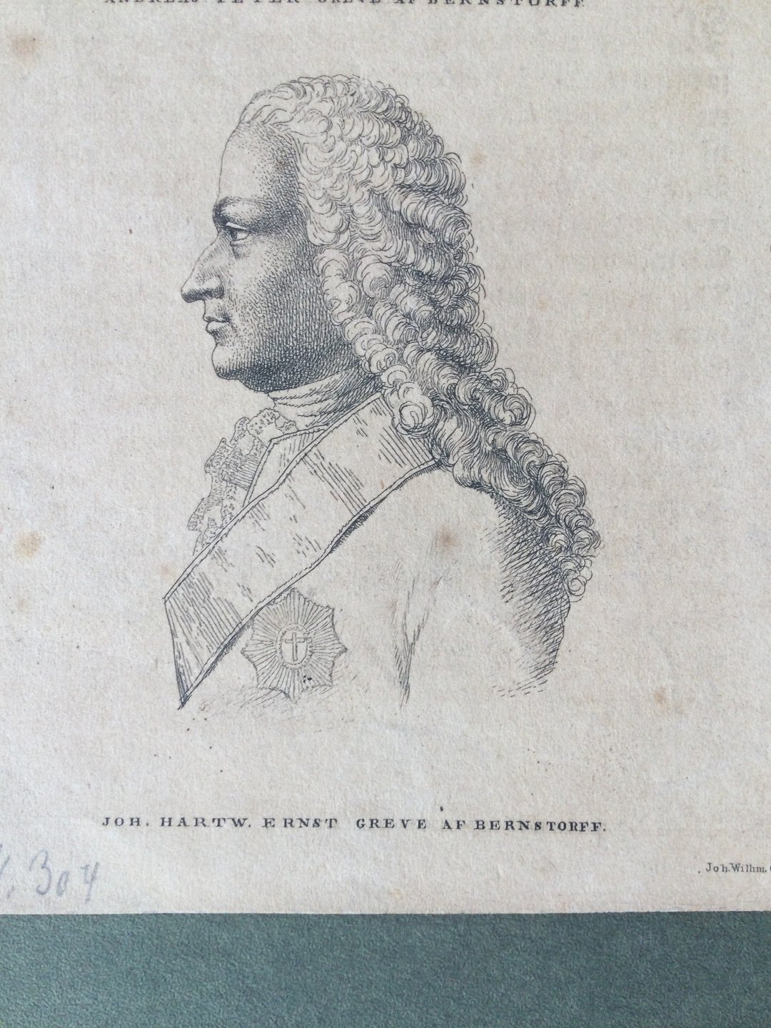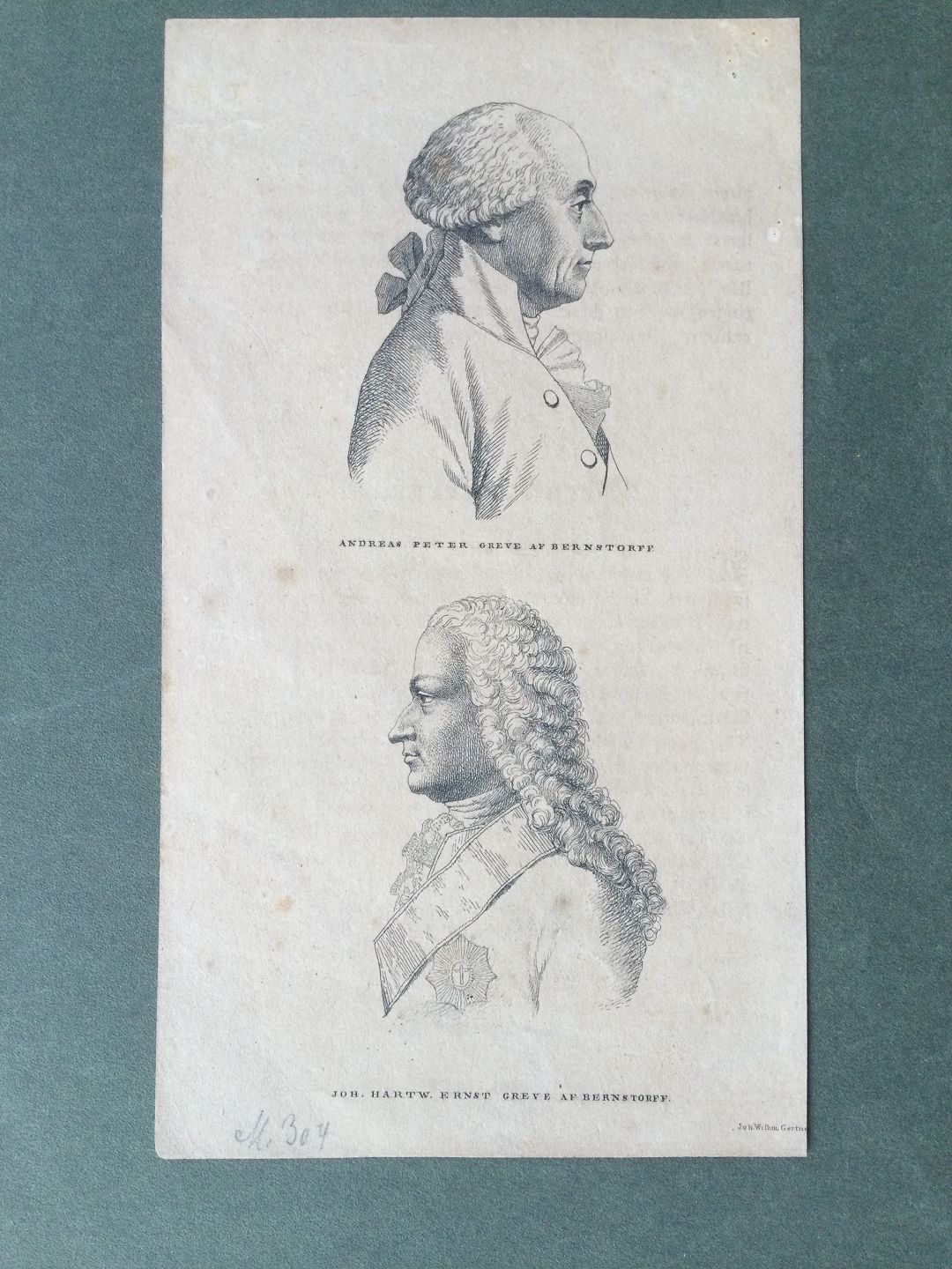 Radering af Johan Vilhelm Gertner - Portrætter af Greve Andreas Peter von Bernstorff og Lensgreve Johan Hartvig Ernst von Bernstorff.