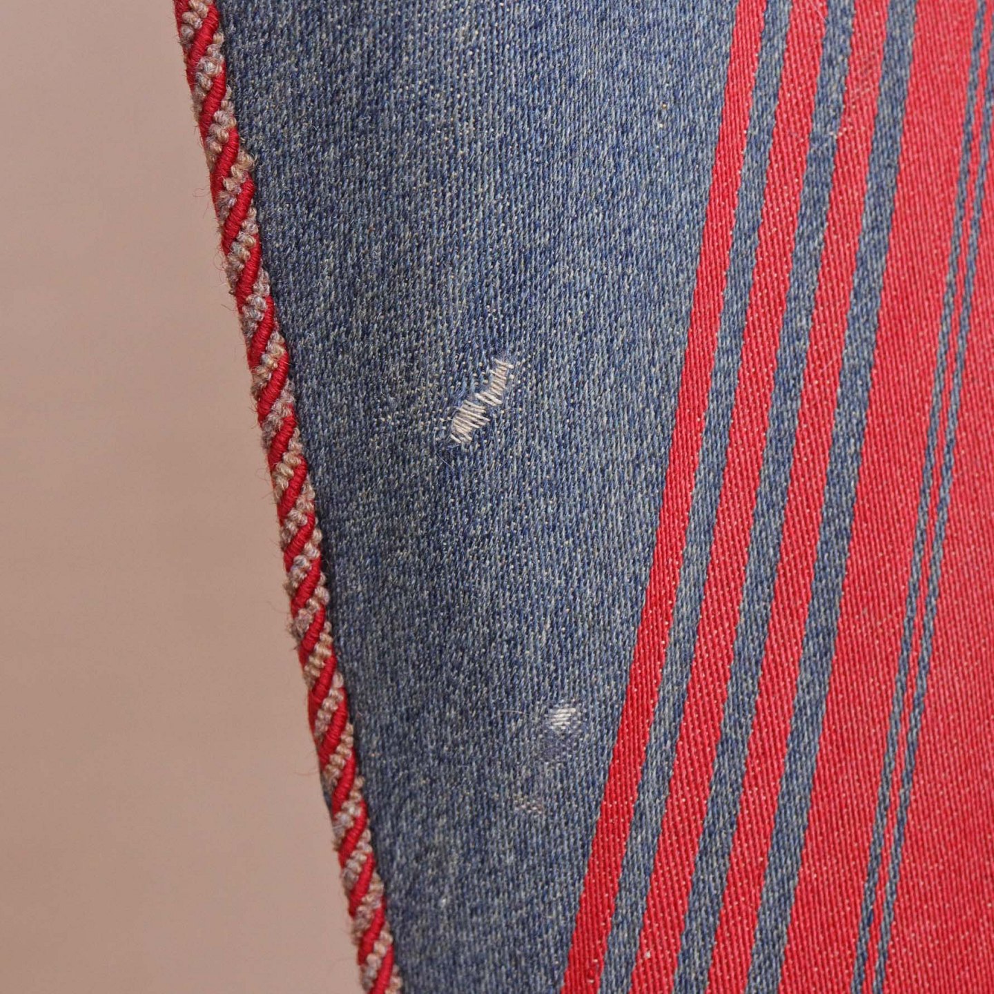 Fremstår med brugsspor på stof og stel. Trænger til ompolstring