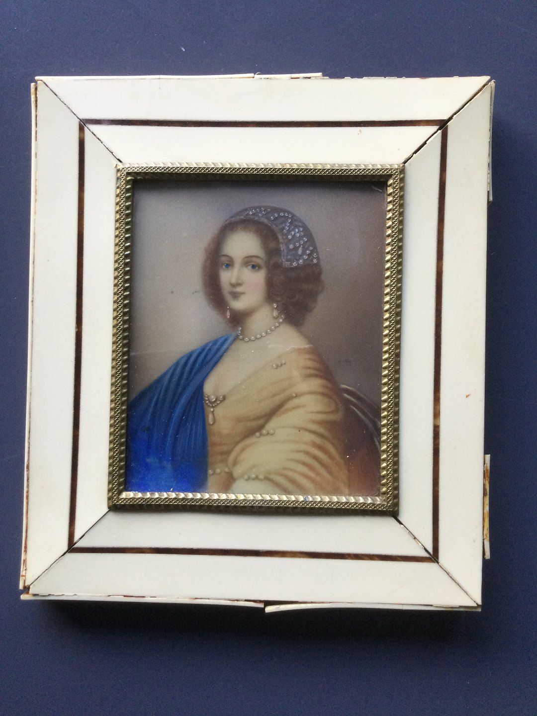 Miniature maleri - Fornem dame med perlesmykker og diadem.