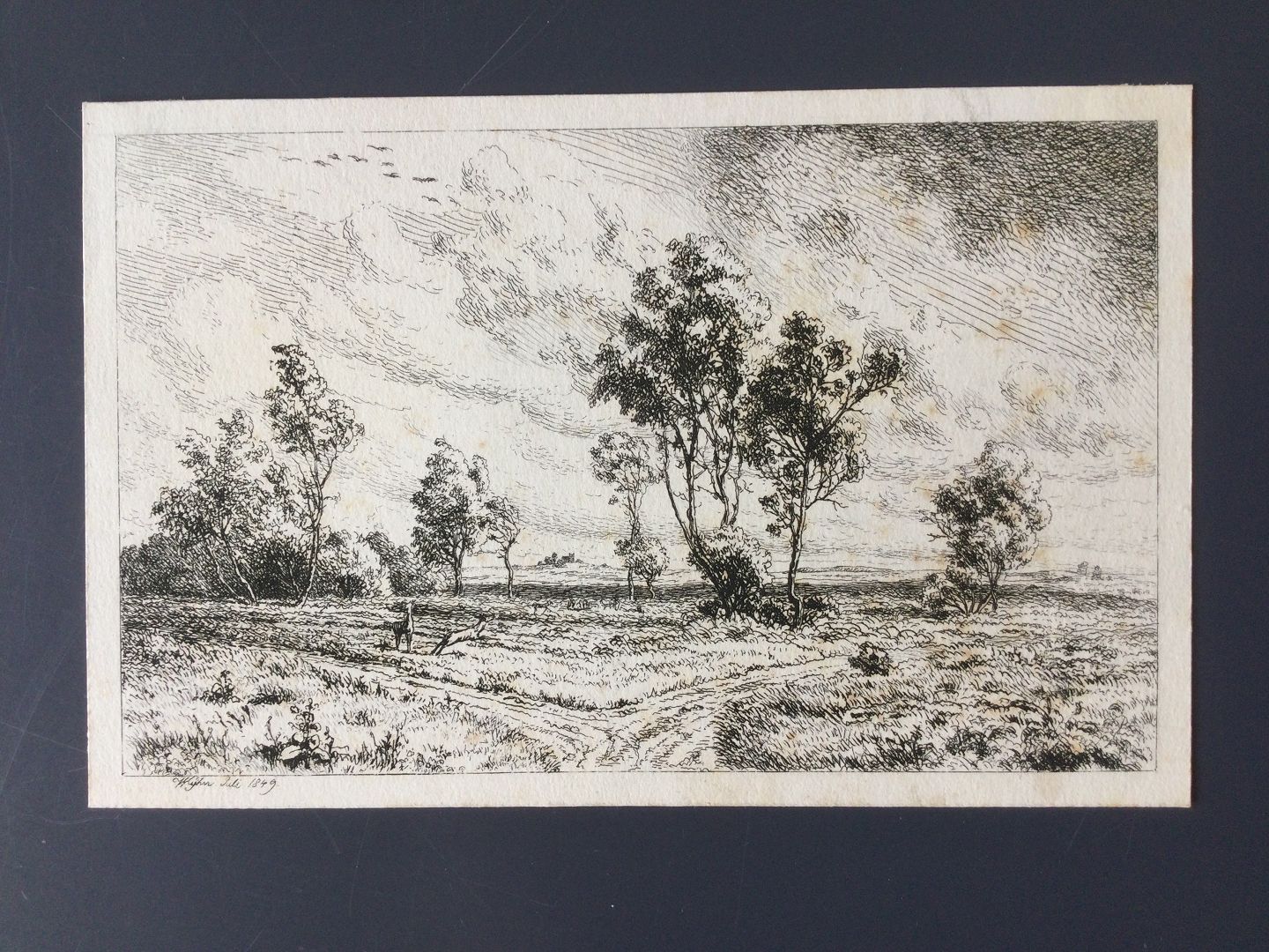 Radering af Vilhelm Kyhn - Landskab i uroligt vejr 1849.