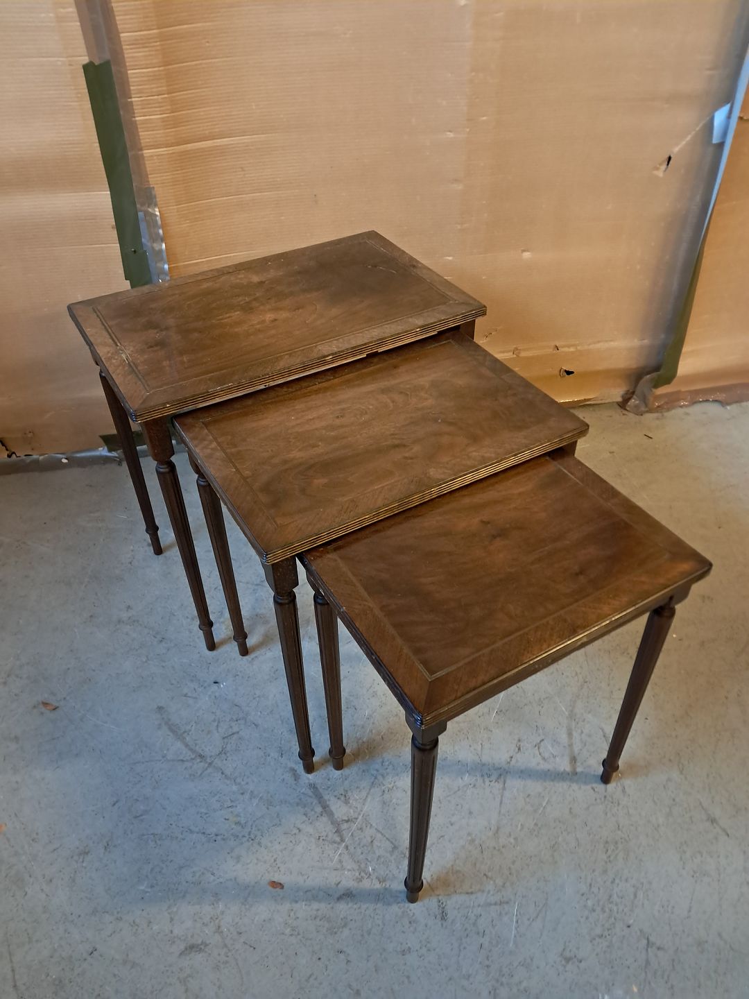 3 Indskudsborde i fineret mahogni, fra 1980erne.