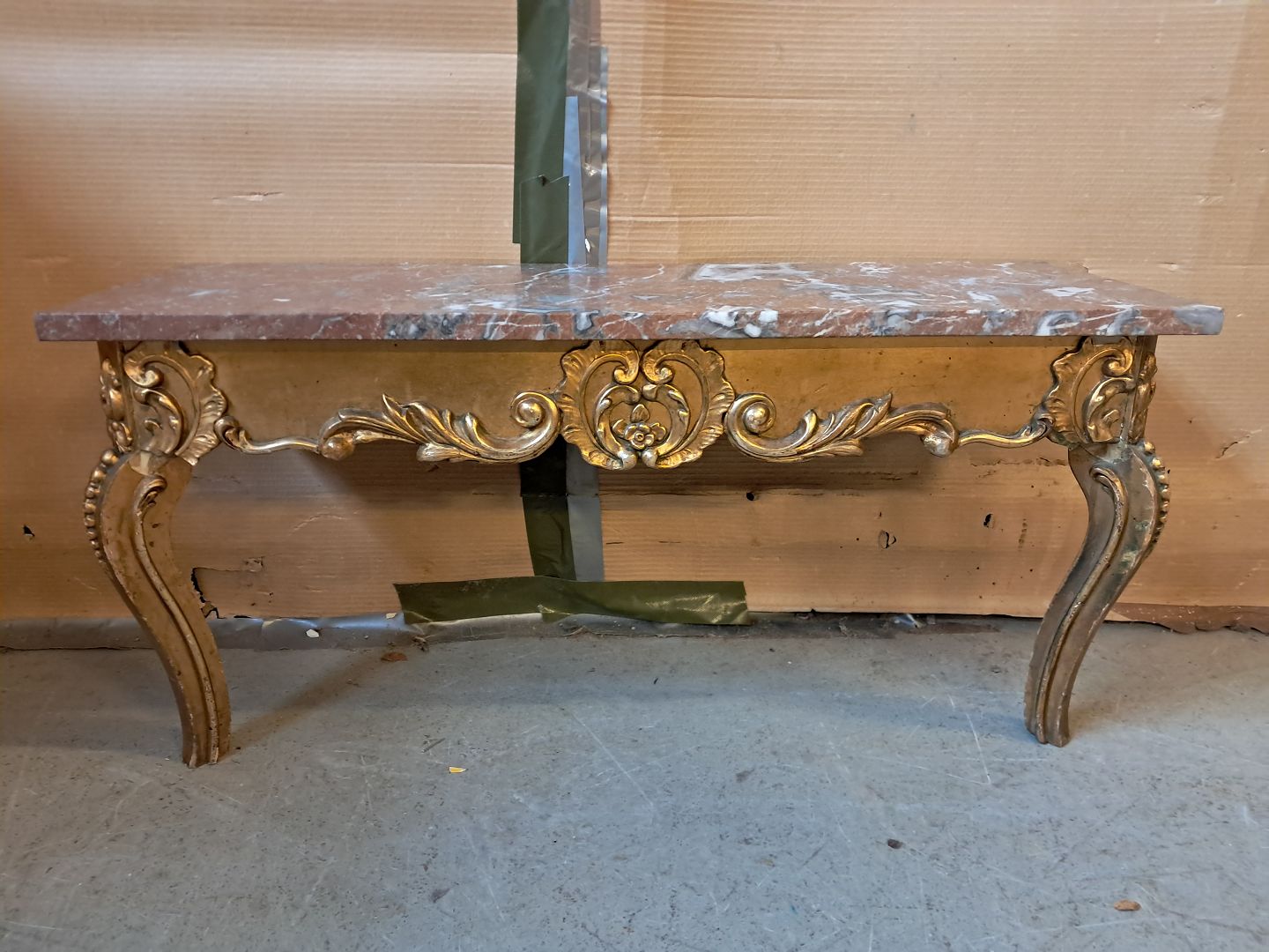 Guldmalet konsol med marmorplade, fra 1900erne.