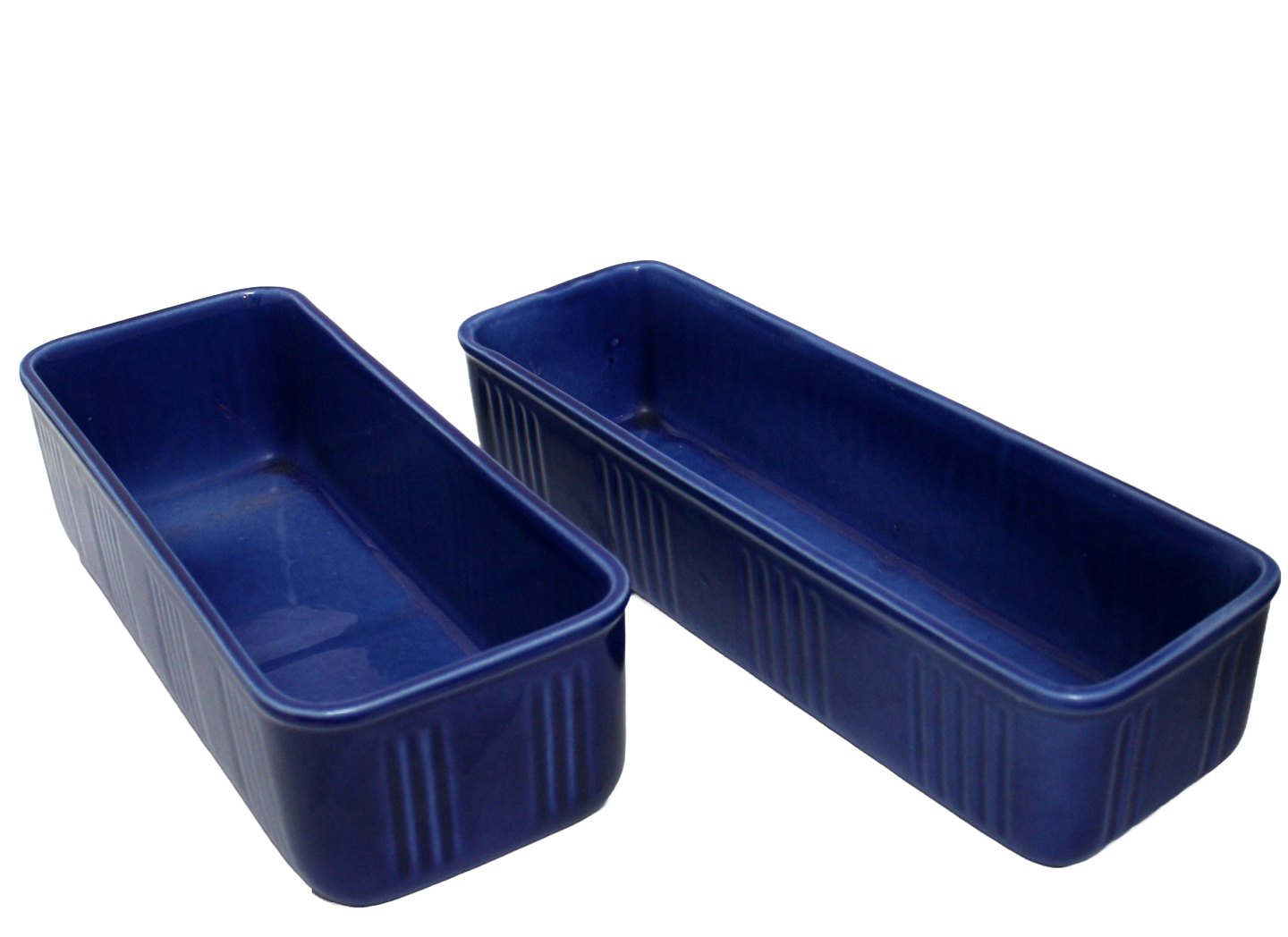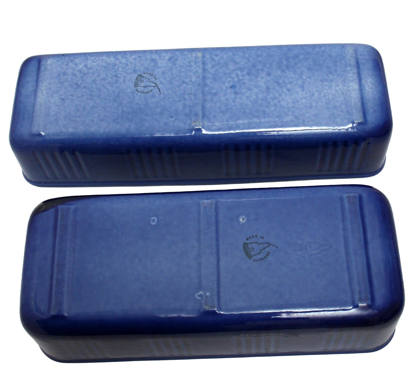 Text available in Danish: Knabstrup, Blåglaserede aflange urtepotteskjulere.