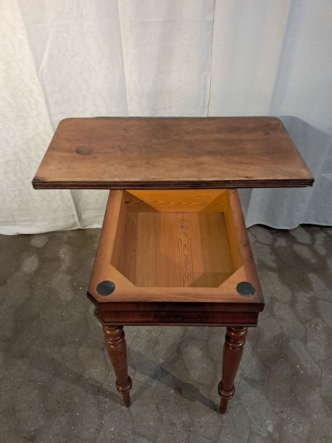 Det har brugsspor og rokker en smule.