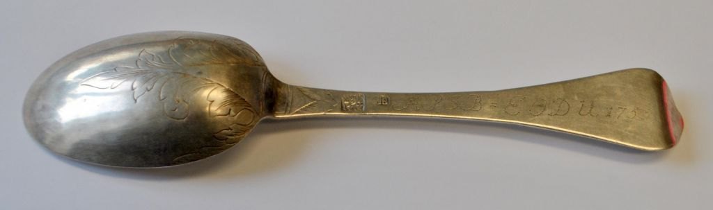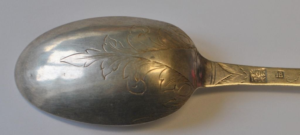 Jørgen Nielsen Brosbøll (ca. 1709 - 1776) spiseske i sølv, Vejle, 1755, Danmark.