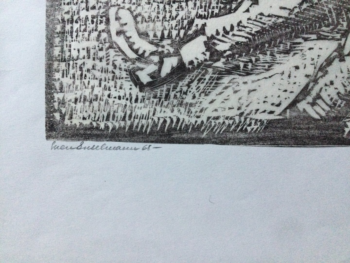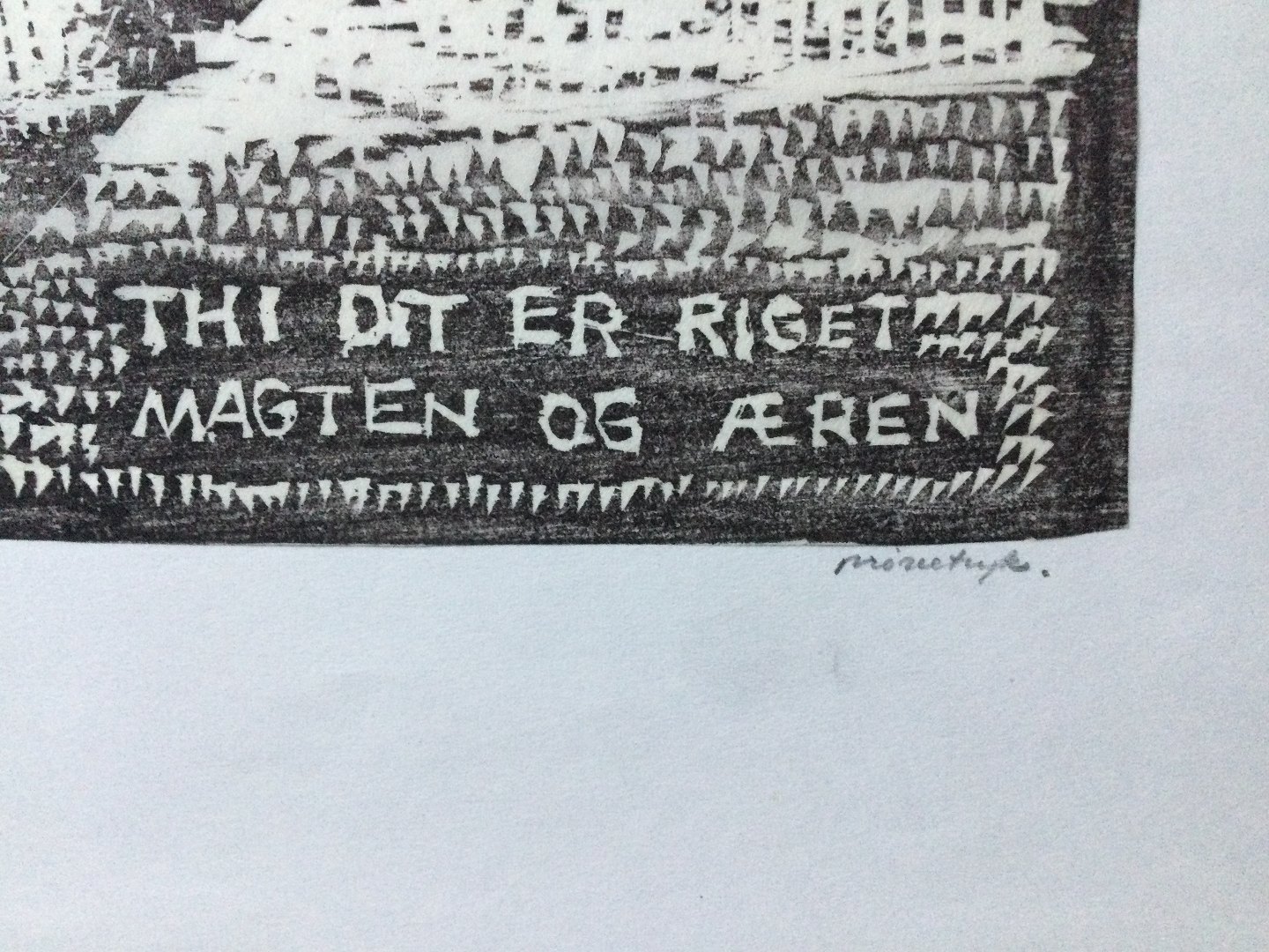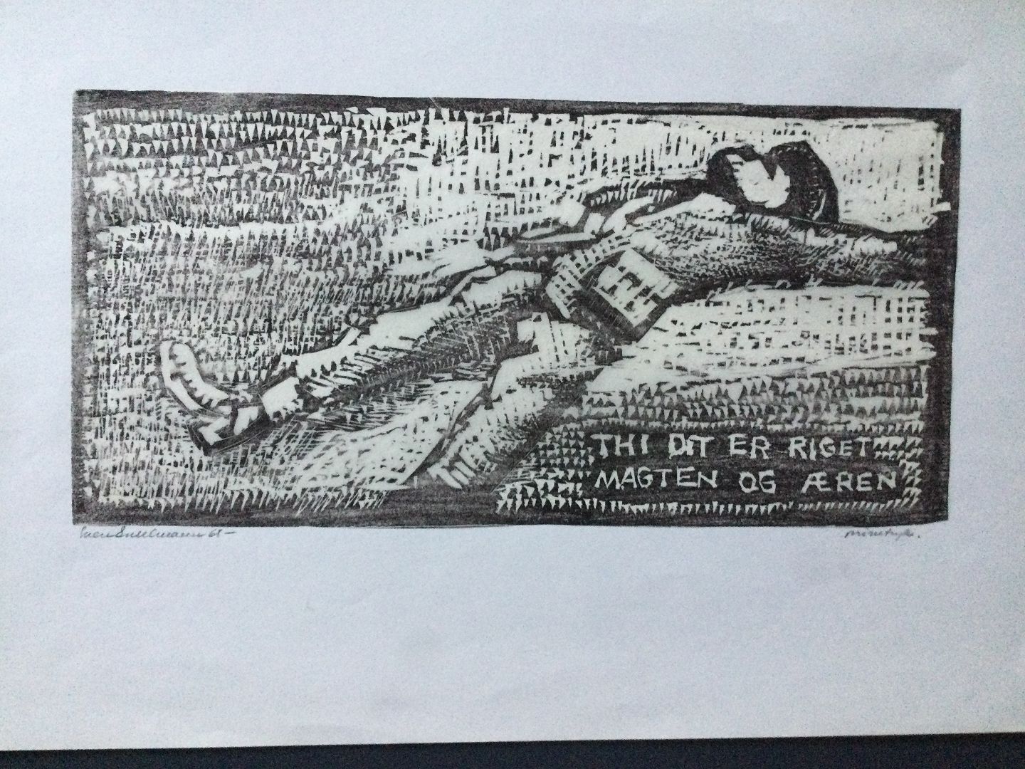 Træsnit af Sven Enselmann - "Thi dit er Riget, magten og Æren" 1968.
