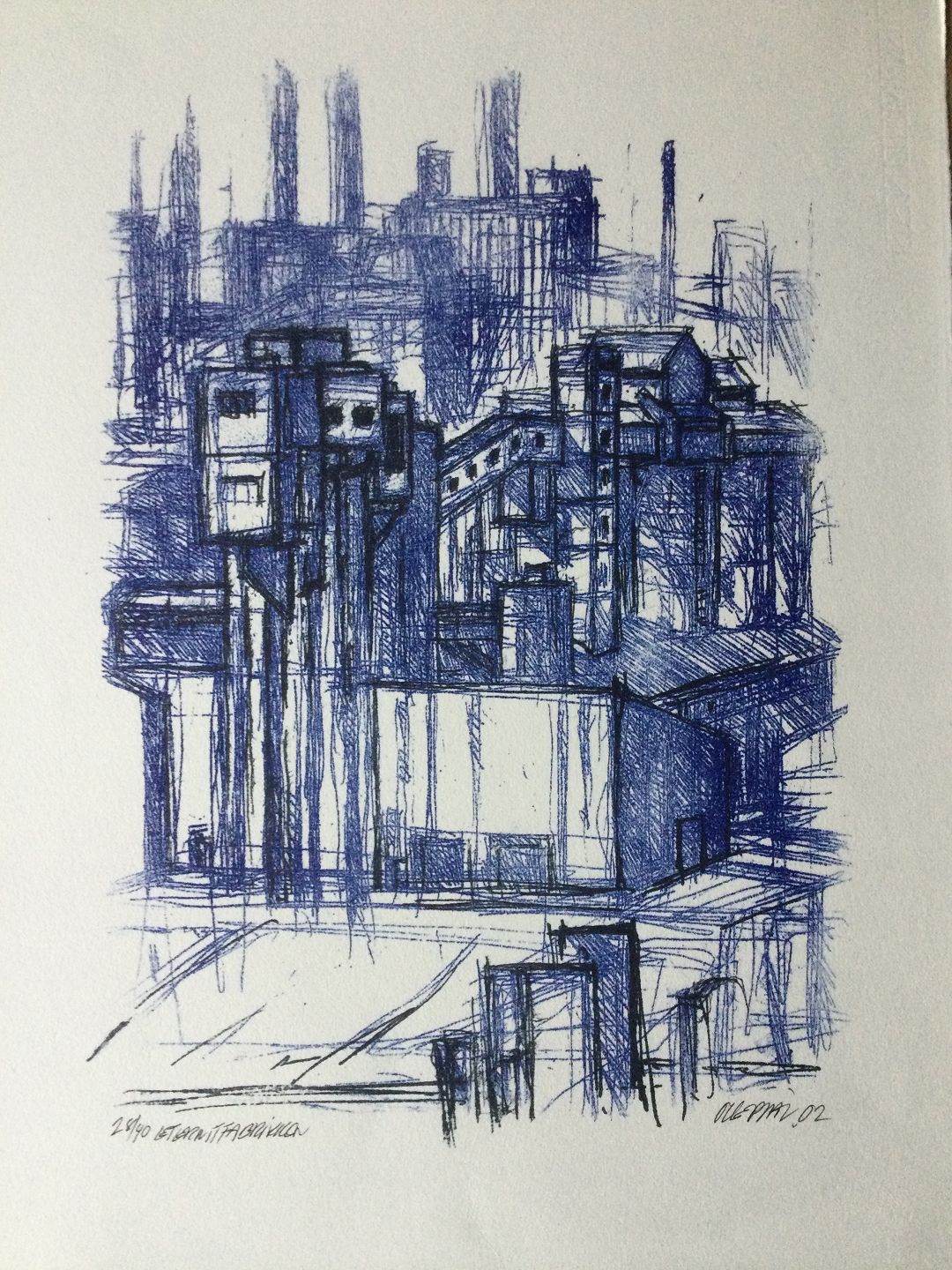 Litografi af Ole Pihl 2002 - Eternit fabrikken.