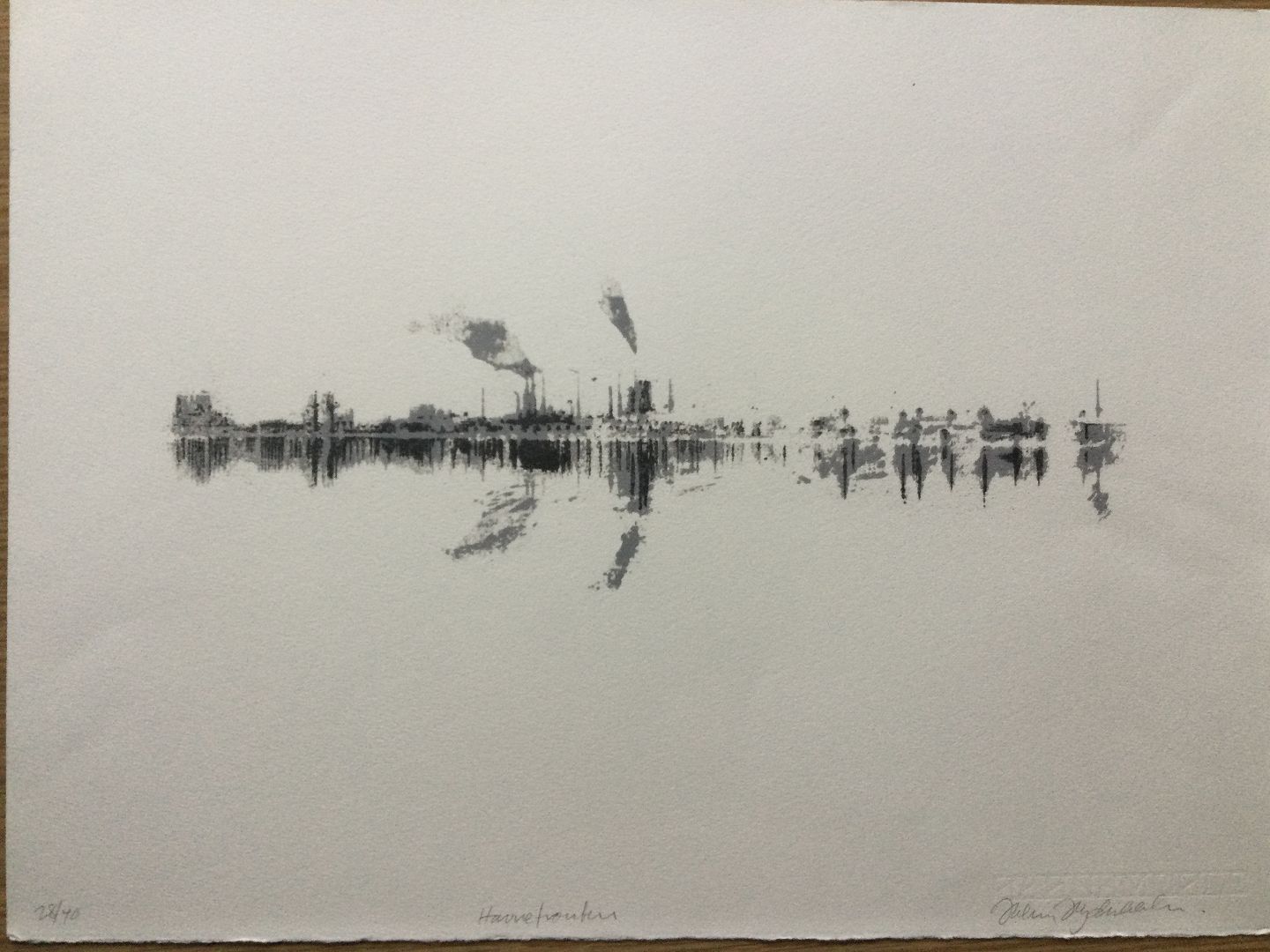 Litografi af Helene Høyer Mikkelsen - Havnefronten, Aalborg.