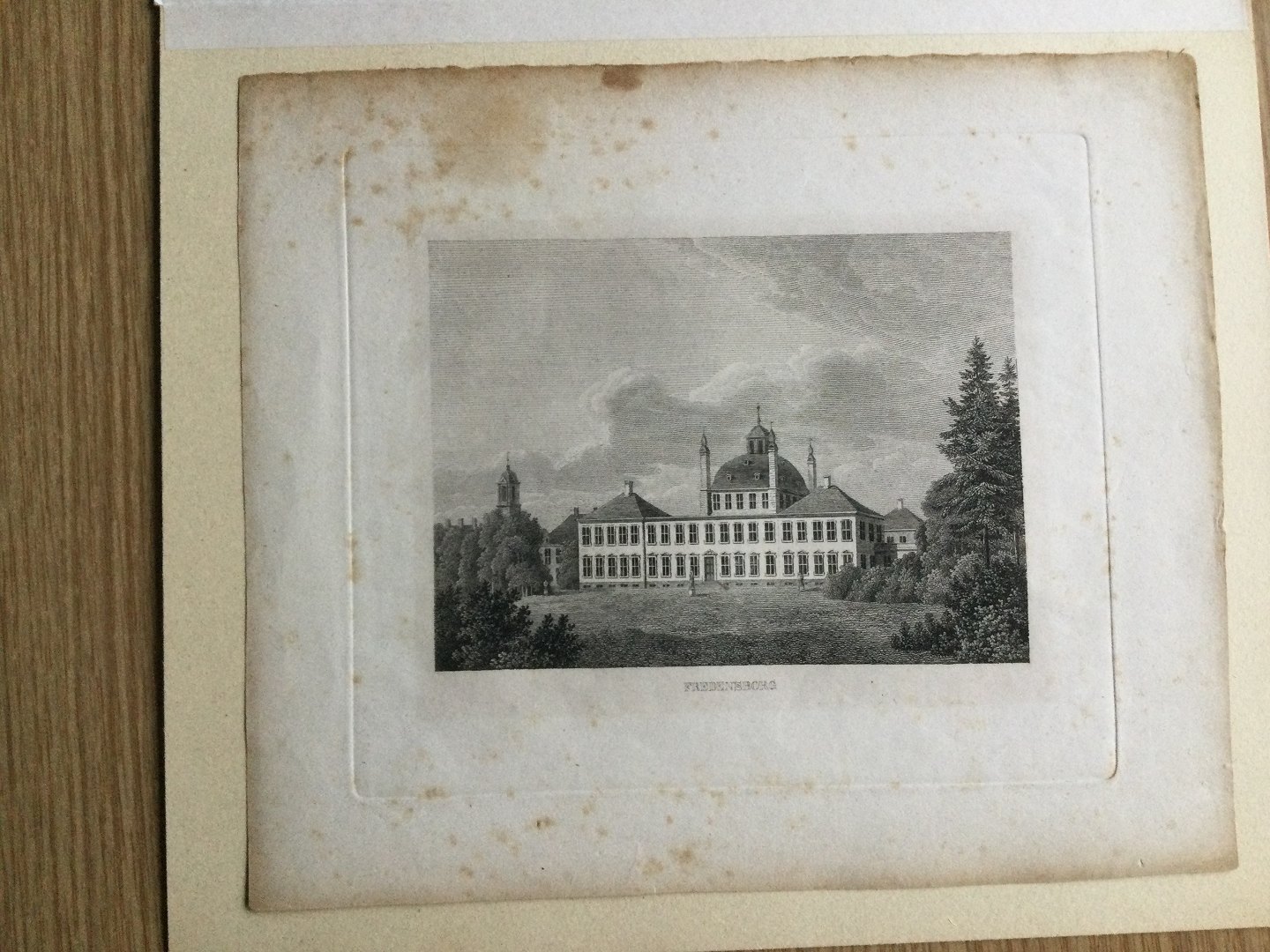 Monteret i grønt passepartout - selve bladet har enkelte pletter, men de er dækket af passepartout.