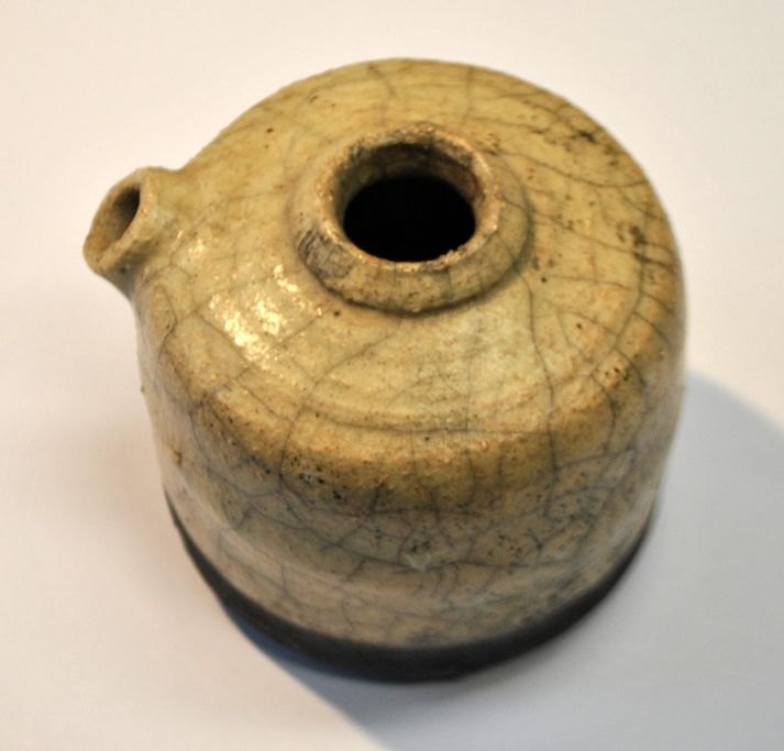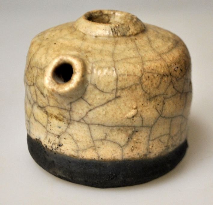 Toft, Rie (1957 - ) Danmark: Kande til kaligrafi. Raku. Signeret. H.: 5 cm. Dia.: 5,5, cm.