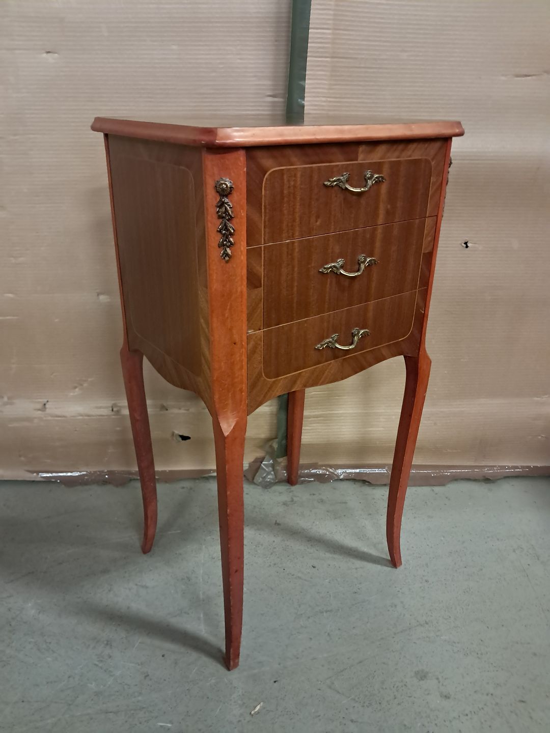 Kommode med intarsia i fineret mahogni, fra 1980erne.