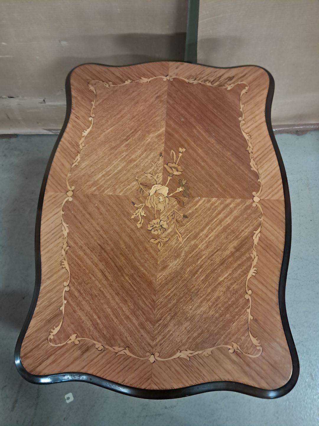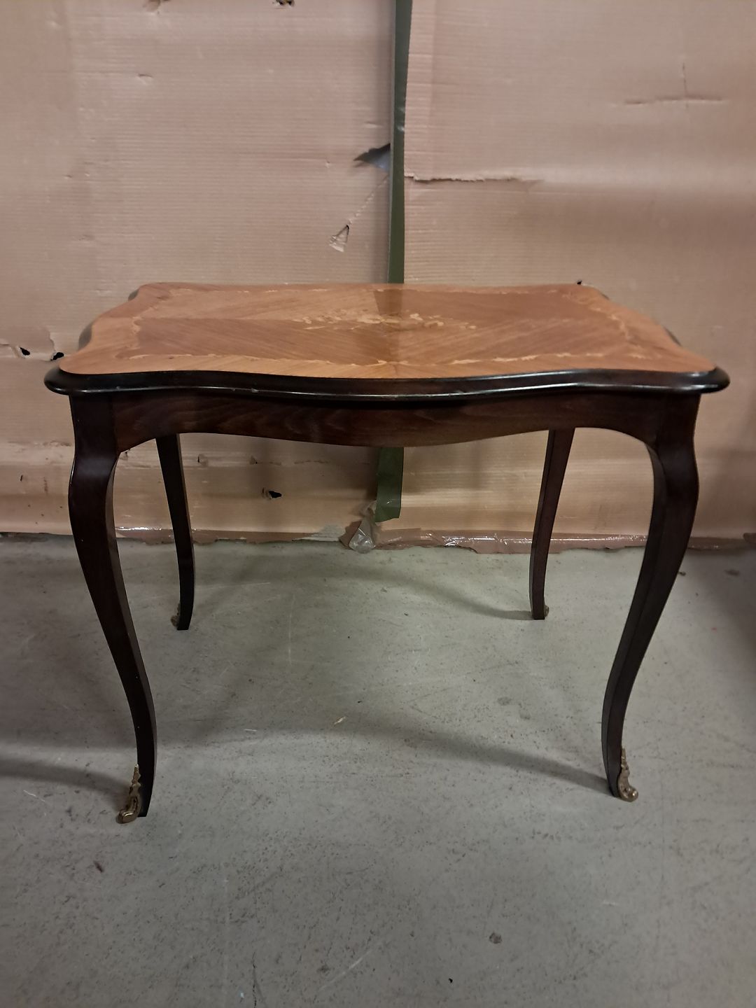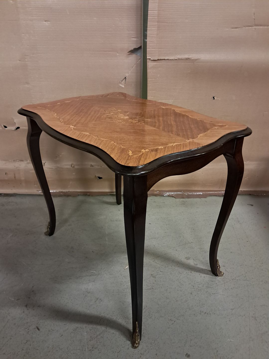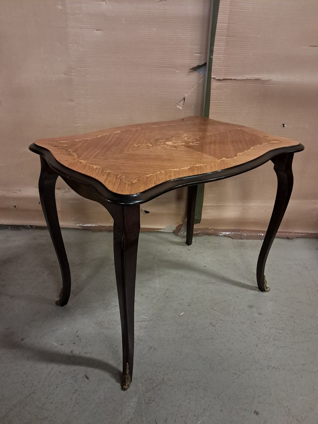 Lampebord med intarsia i fineret mahogni, fra 1980erne.