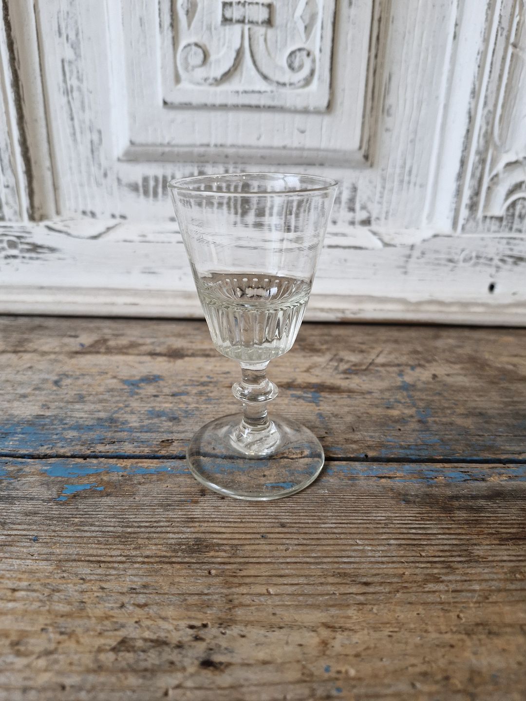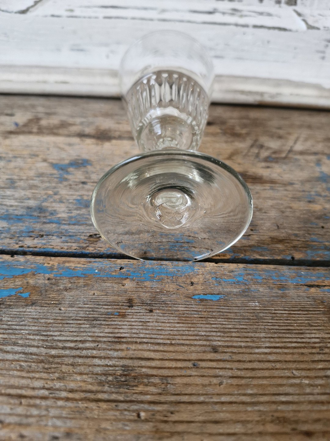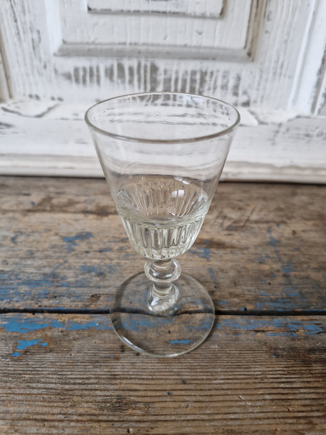 1800 tals vinglas på stilk med knap, fastblæst kumme med riflet underdel