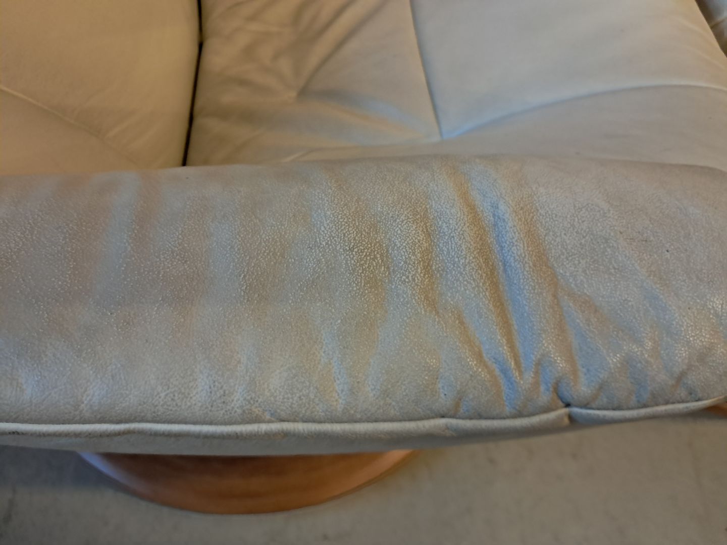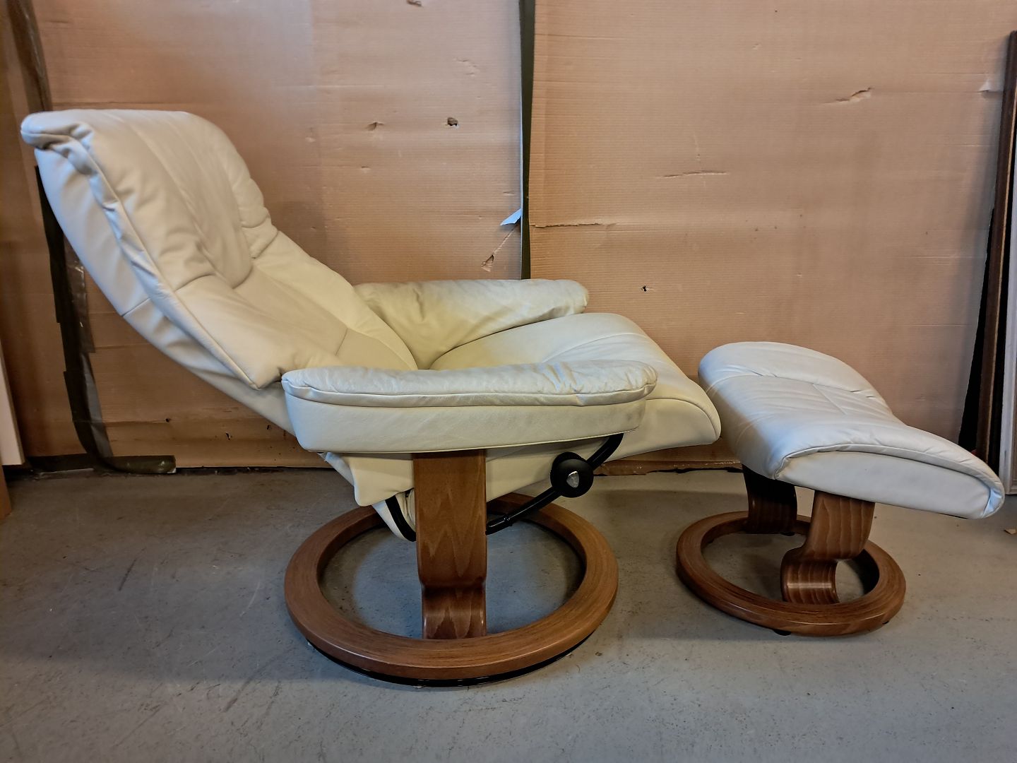 Stressless lænestol og fodskammel i læder, fra 2000erne.