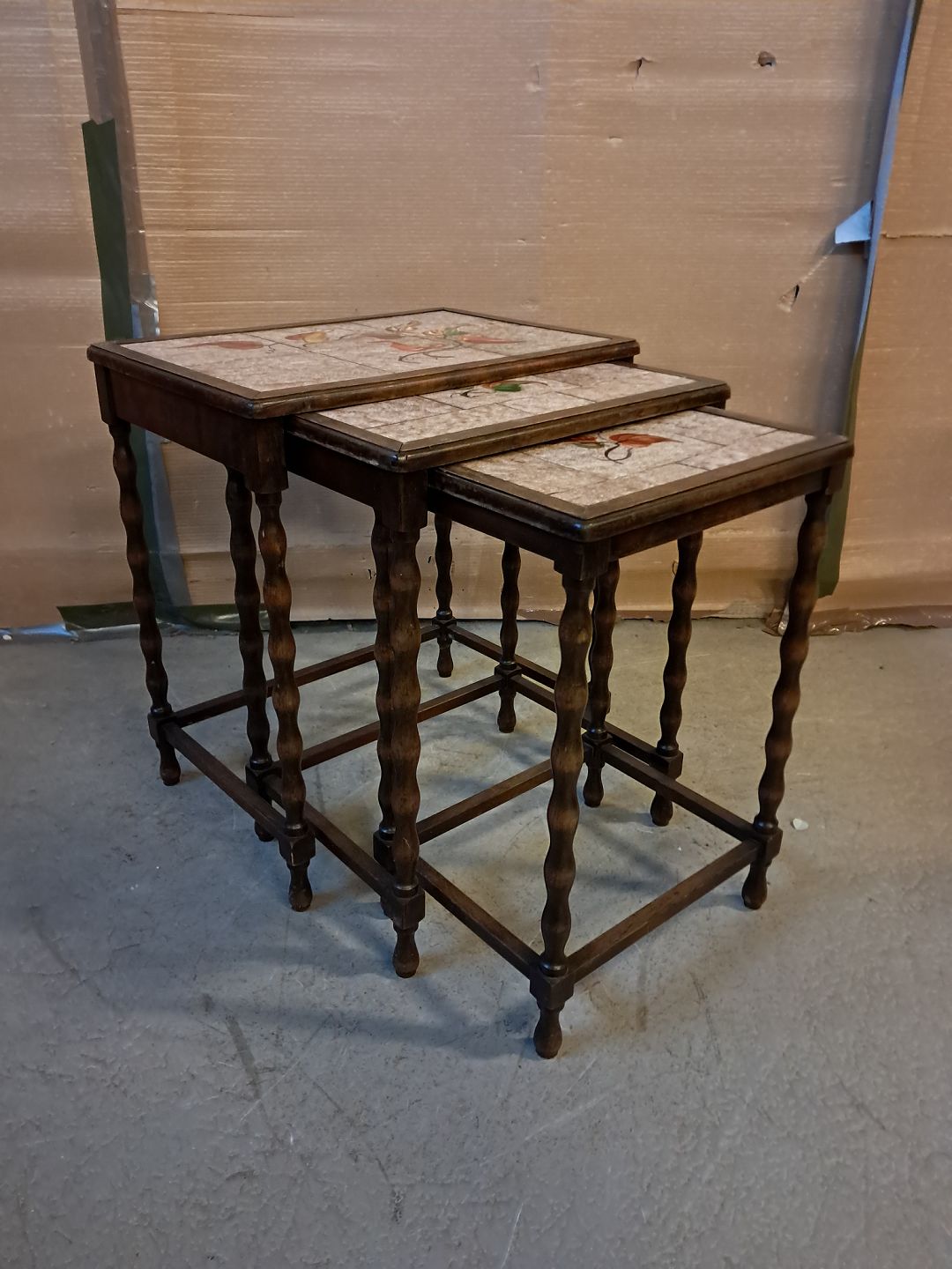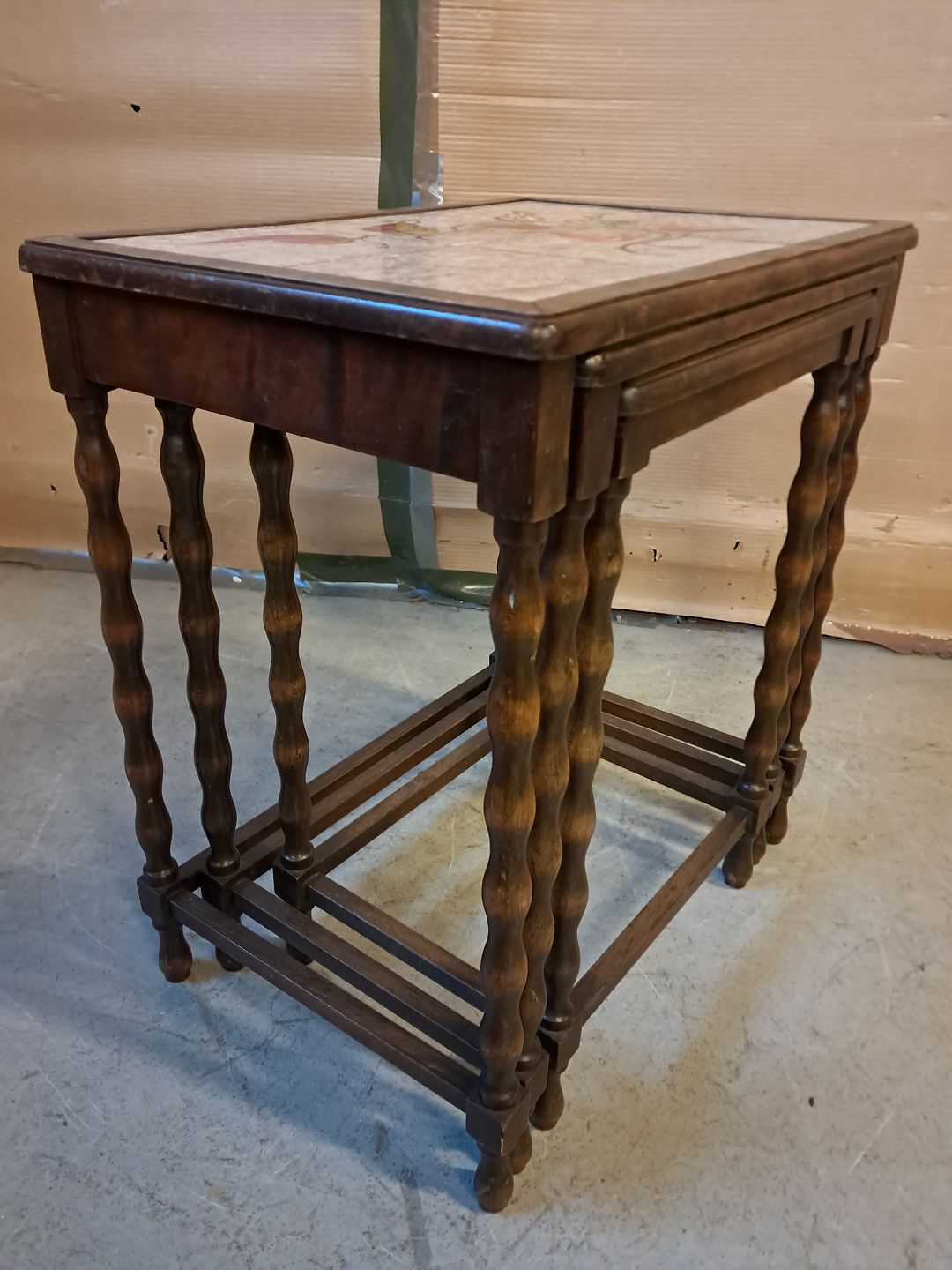3 Indskudsborde i birketræ med kakler, fra 1930erne.