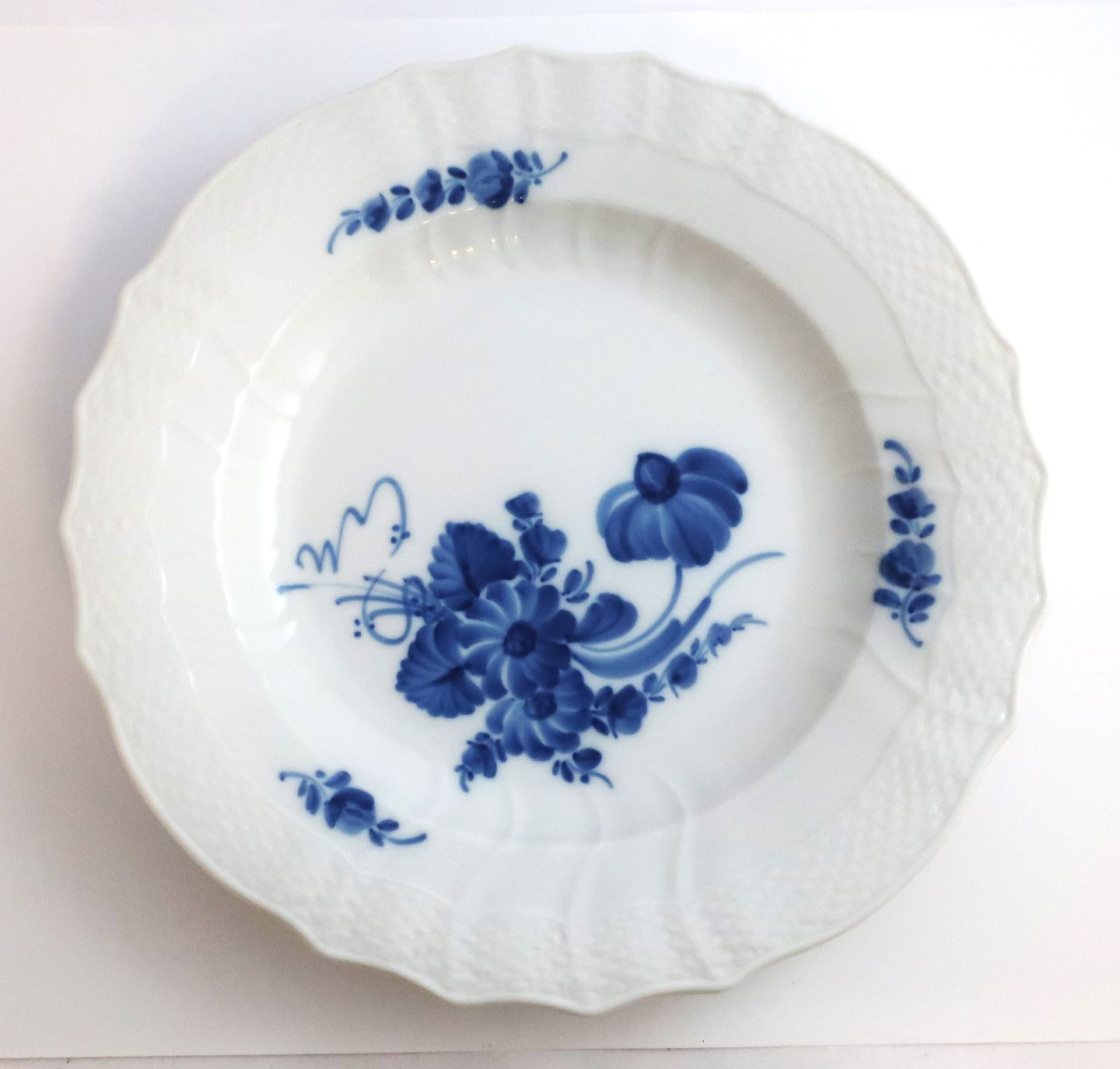 Royal Copenhagen. Blå blomst, svejfet. Middagstallerken. Model 624 (1621). Diameter 25 cm. (1 sortering)