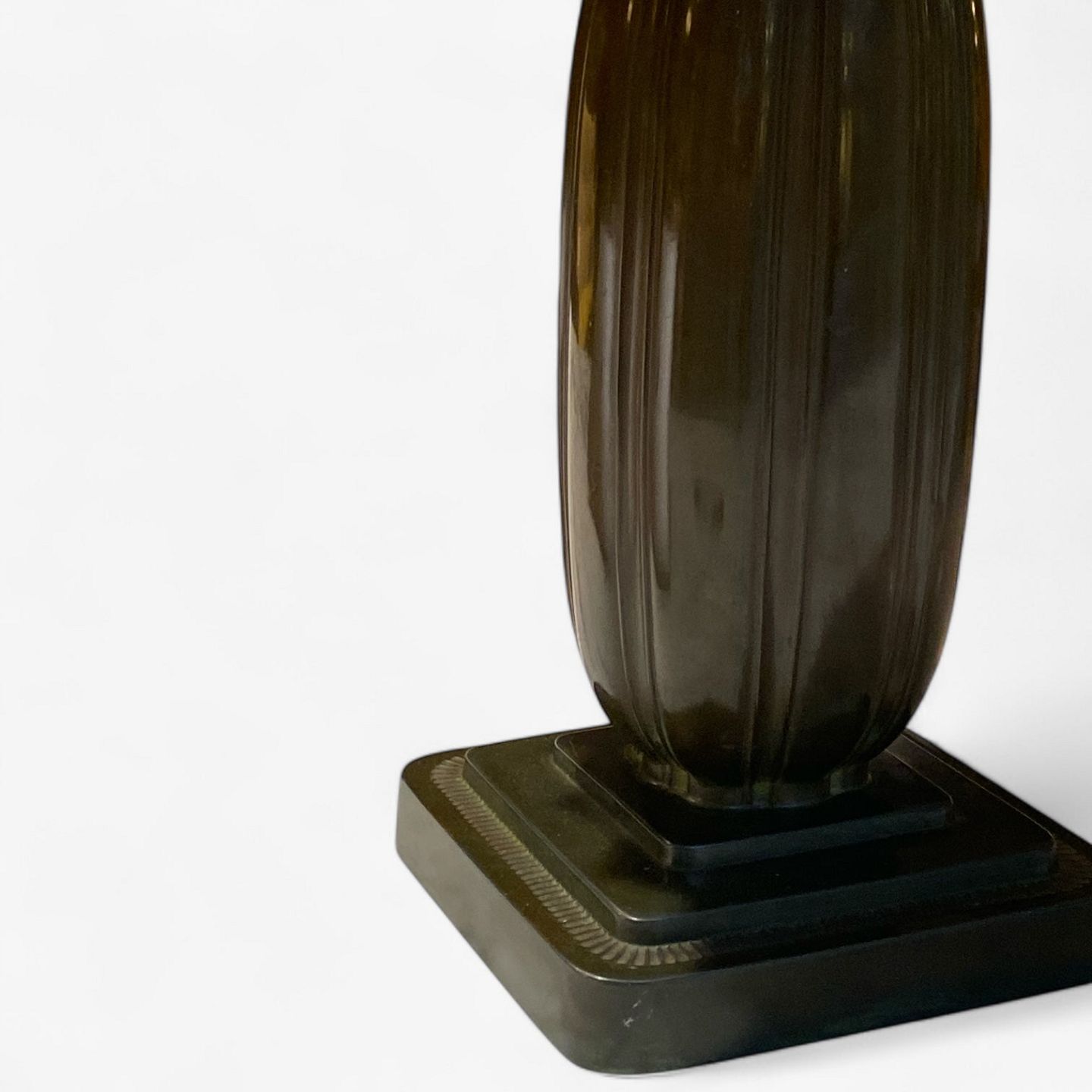 Pair of table lamps in disco metal with fluted bodies.