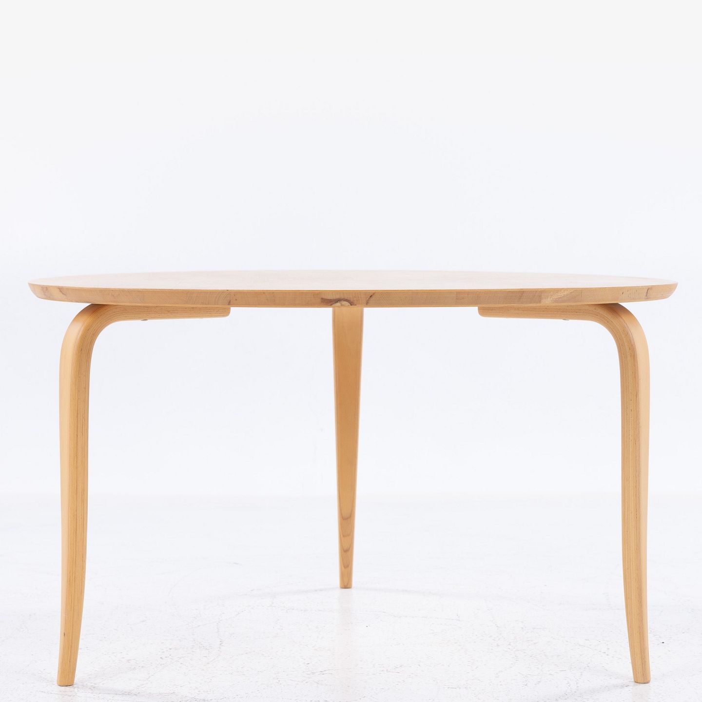 Sofabord - 'Annika' rundt med top i mazurbirk og stel i bøg.