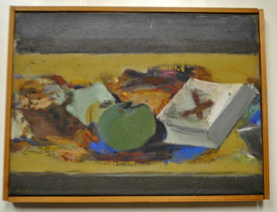Gregersen, Emil (1921 - 1993) Danmark: Opstilling på et bord. Olie på lærred. Signeret: Emil G. 24 x 33 cm.