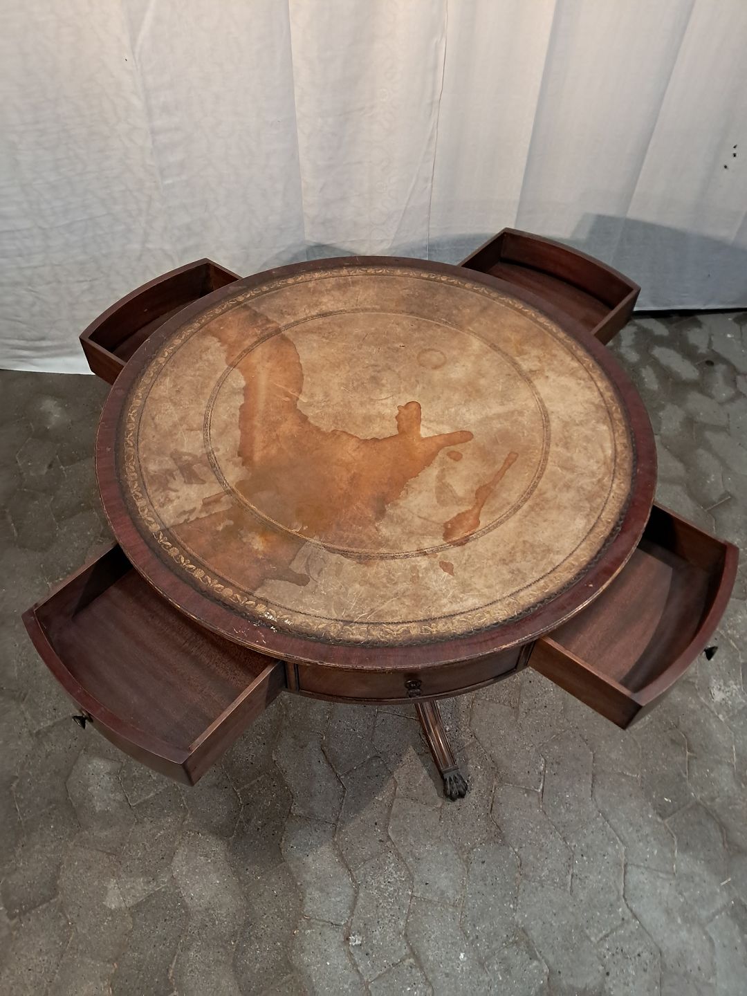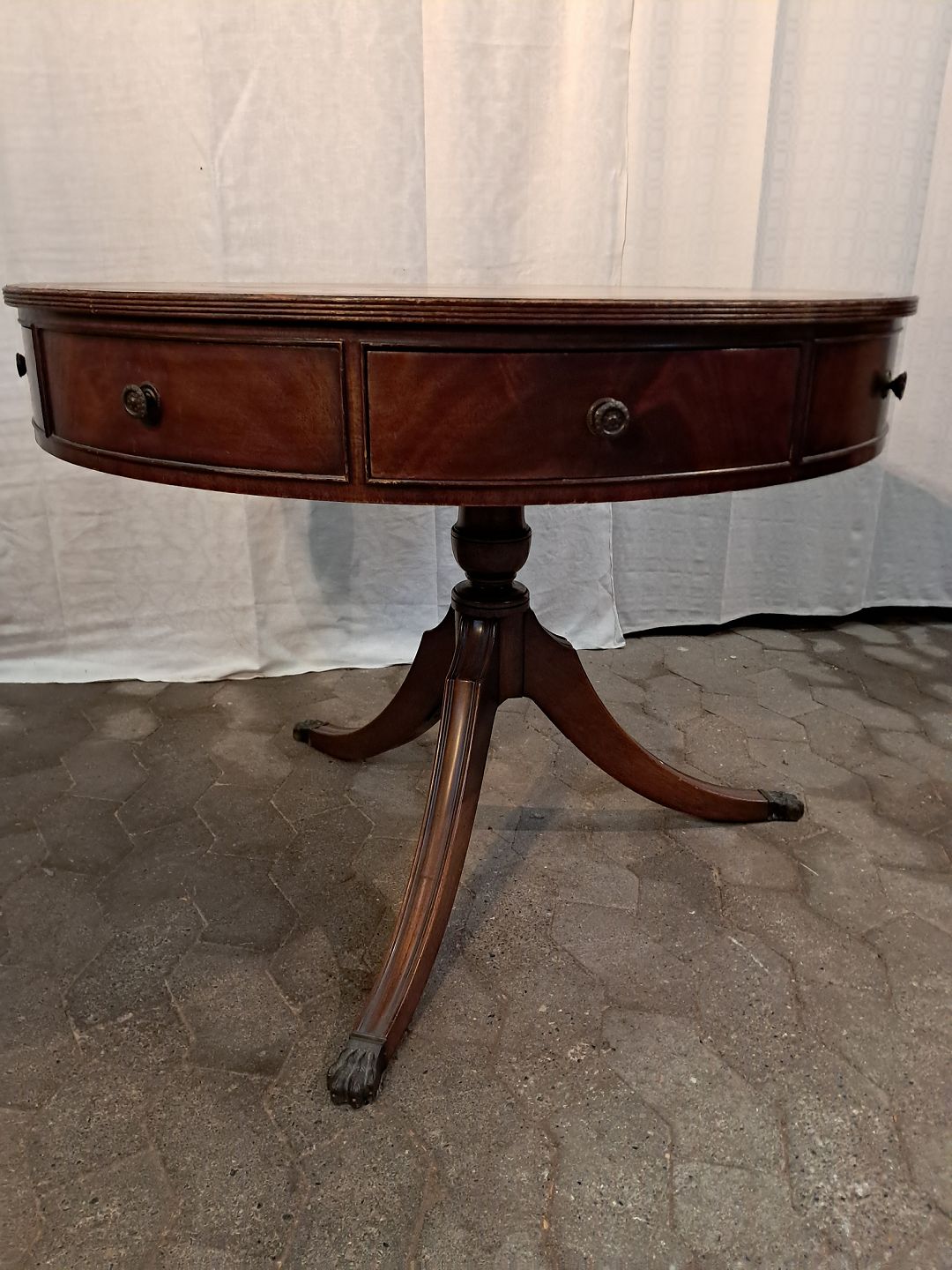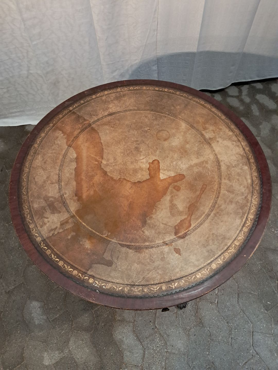 Salonbord i fineret mahogni med læder indlæg, fra 1980erne.