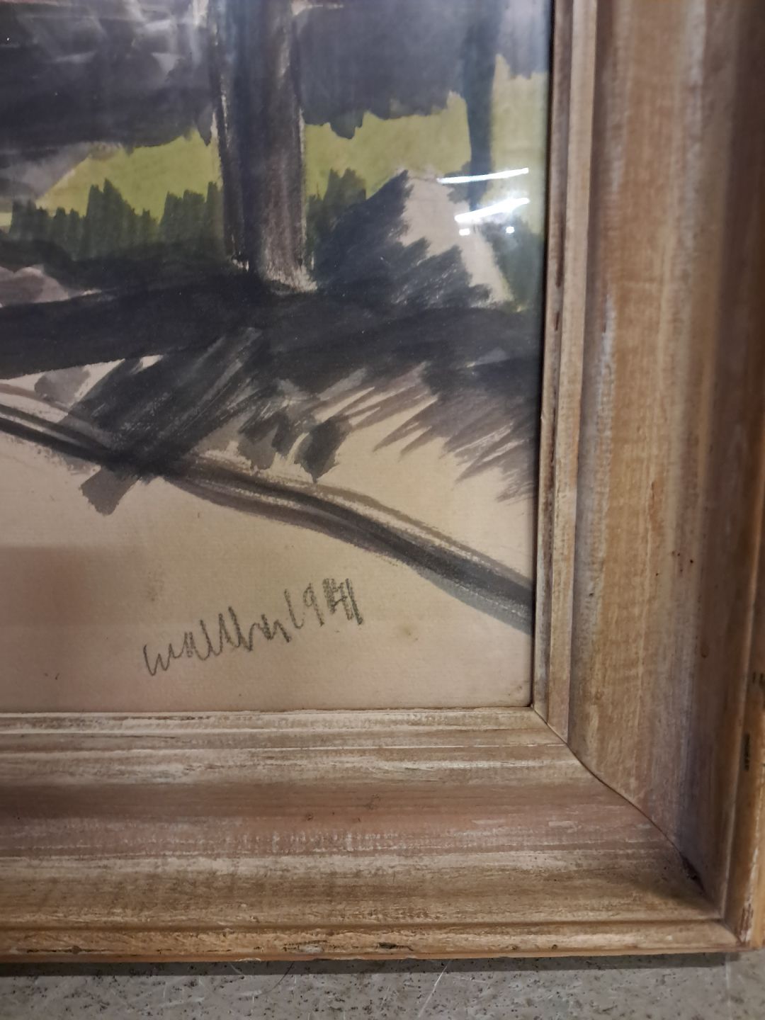 Billede i glas og ramme i massivt fyrretræ, fra 1940erne.