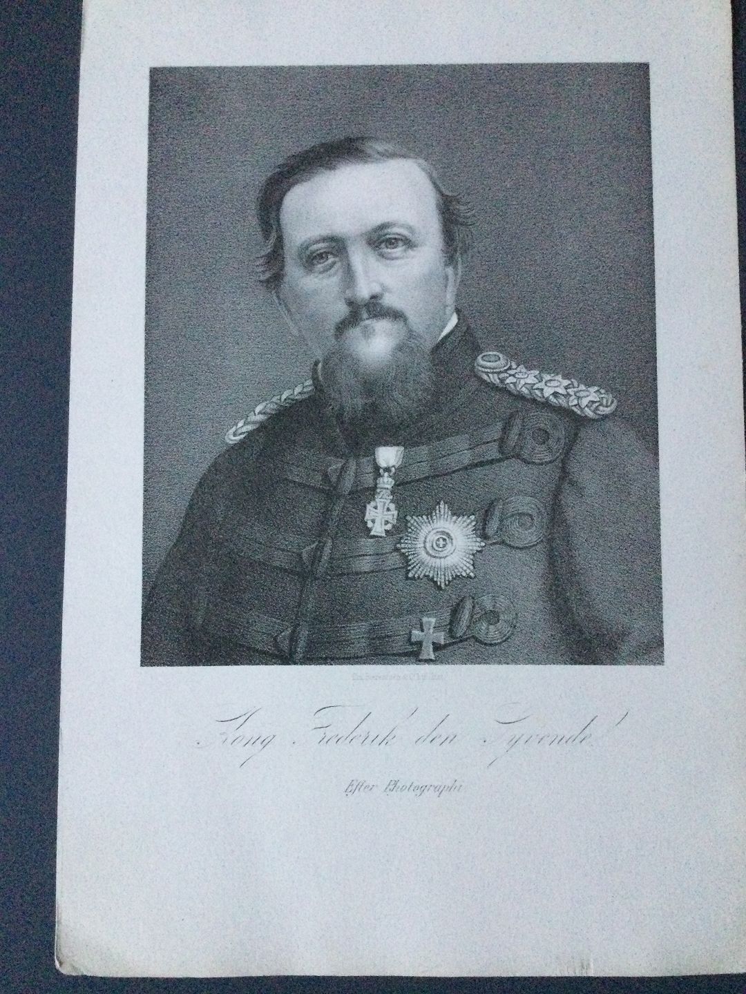 Portræt af HM Kong Frederik VII af Danmark - litografi af Em. Bærentzen ca. 1850.