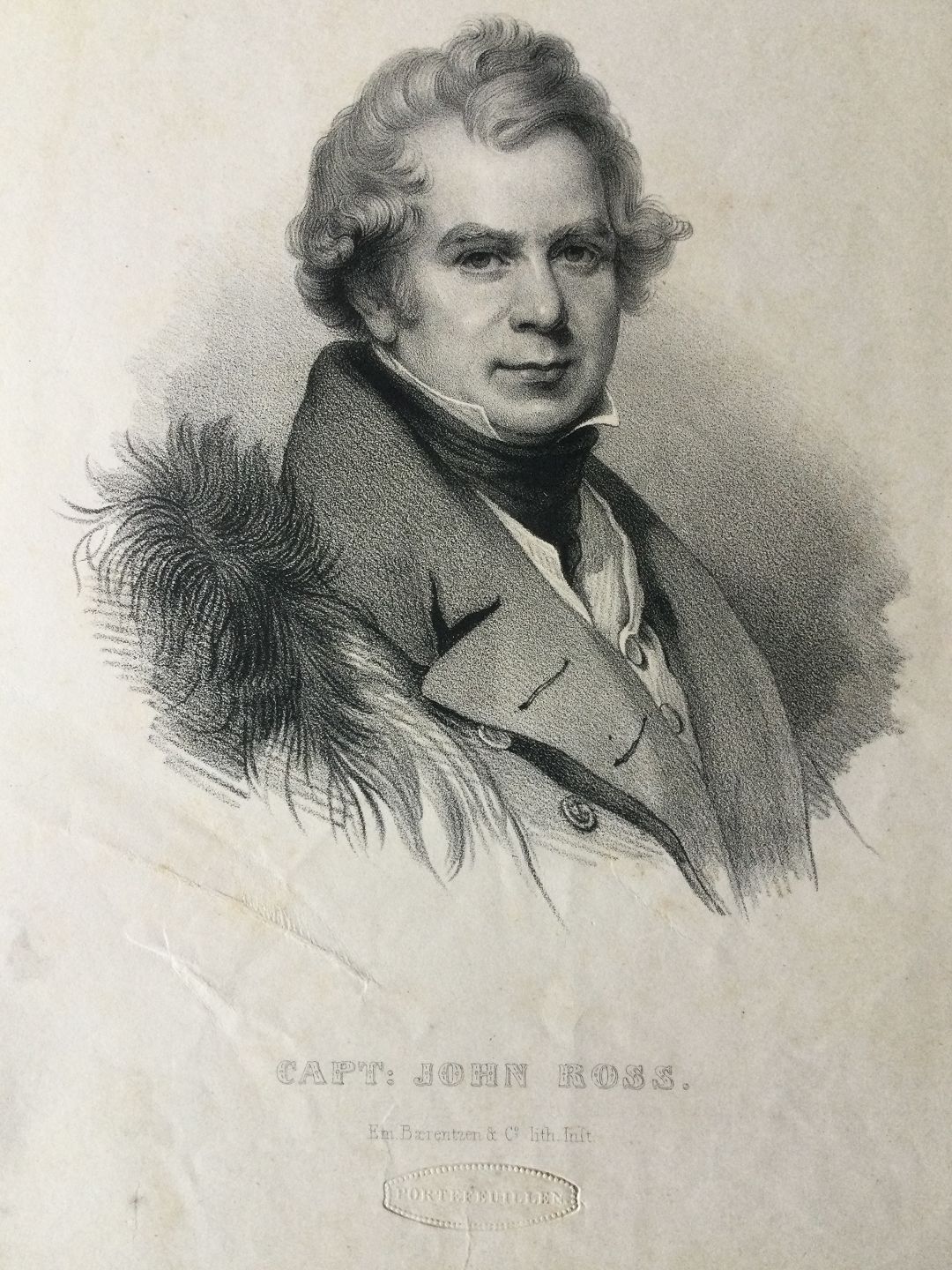 Portræt af den polarforsker John Ross - litografi af Em. Bærentzen ca. 1850.