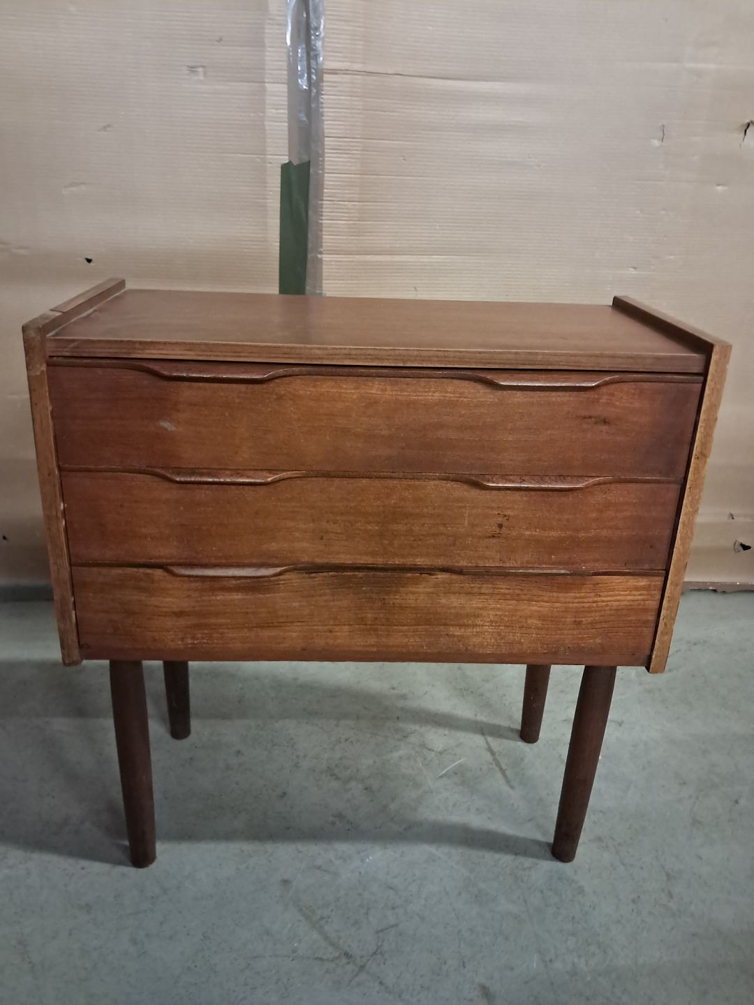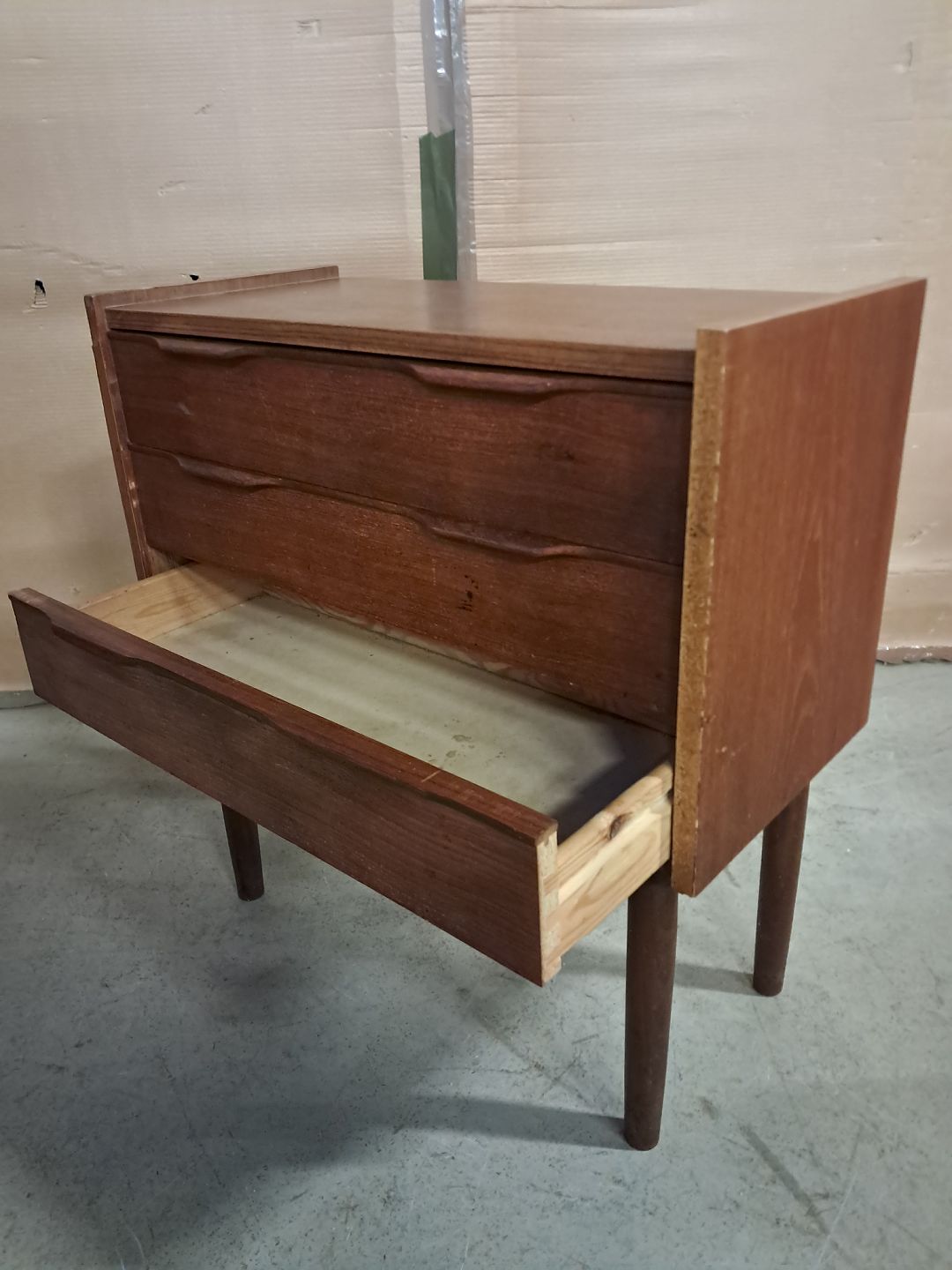 Kommode i fineret teaktræ, fra 1960erne.