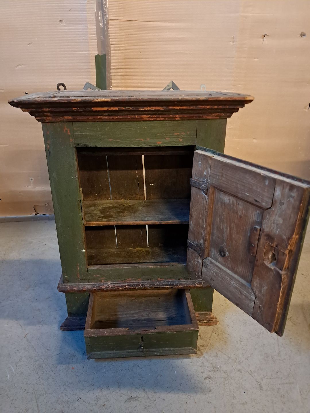 Vægskab i malet massivt fyrretræ, fra 1860erne.