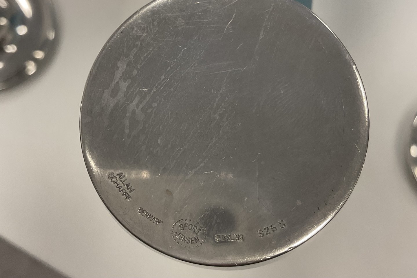 Georg Jensen / Holmegaard Sterling Sølv og glas 3 armet lysestage af Allan Scharff
